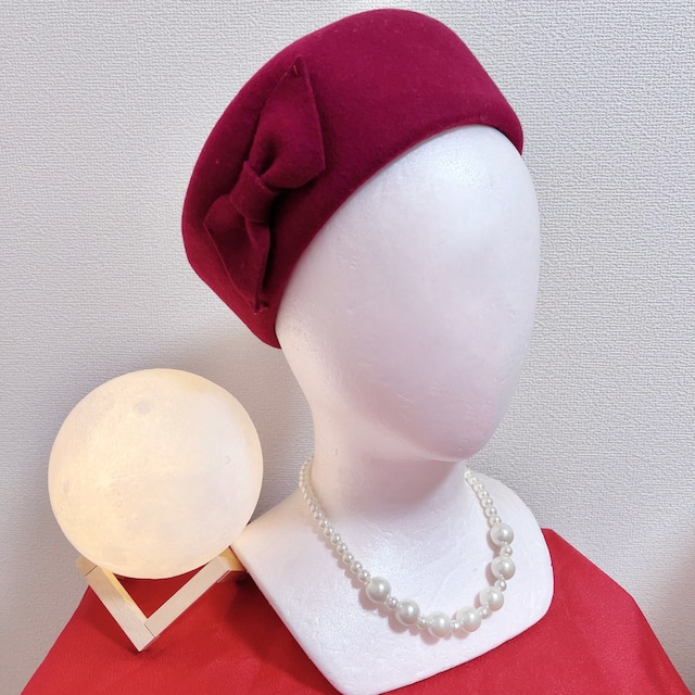 【浪漫文学】 フェルト生地のレトロなトーク帽。 ボルドーカラーにリボンのワンポイント、内側はゴムになっていてフィットします。 やや後方、斜めに倒してかぶることでヴィンテージかつクラシカルな装いにマッチ。 ロングヘアの方にもおすすめです。 *** いつか私にも、私だけの物語が。