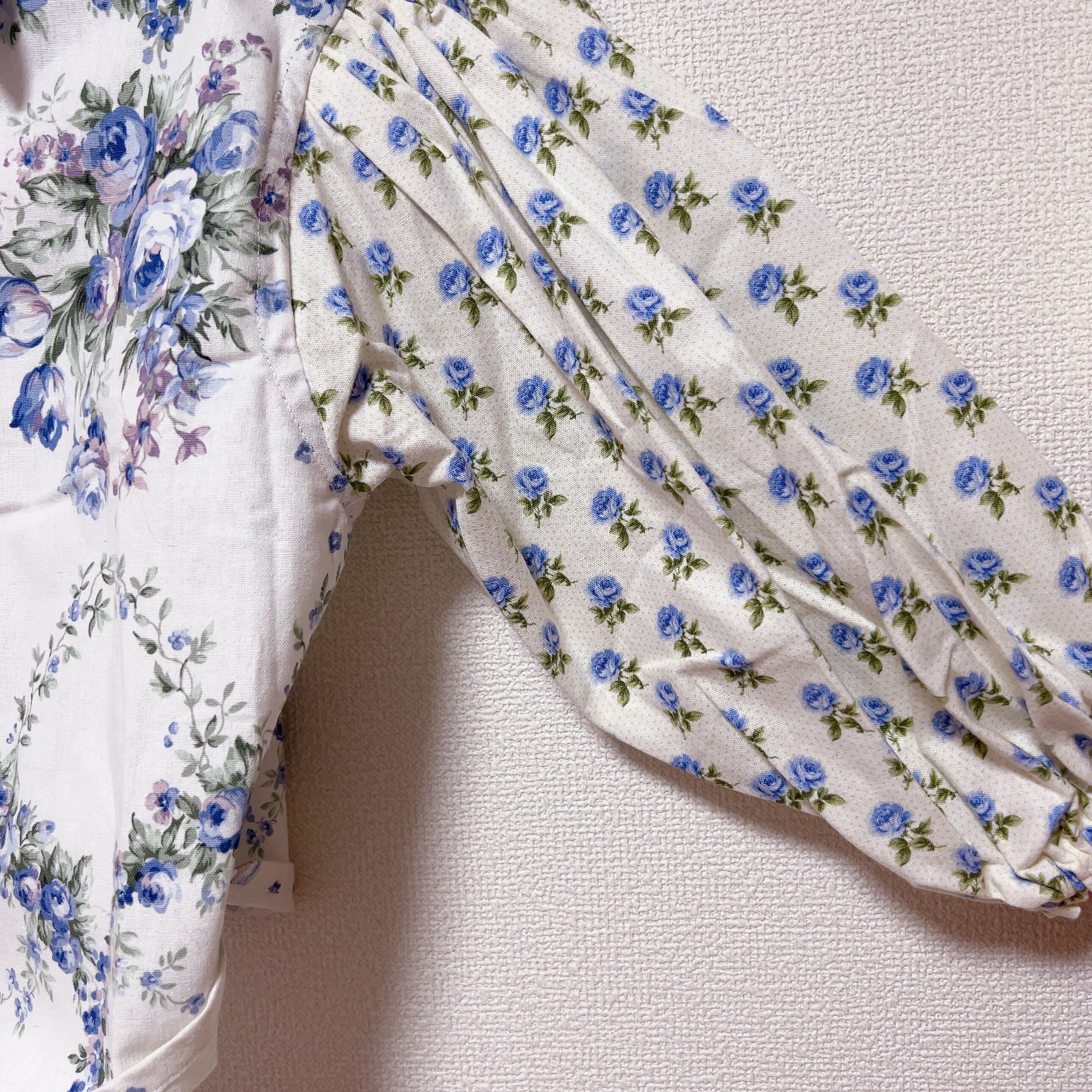 中厚手のコットン生地がざっくりとした質感で、ヨーロピアンな気持ちに。春を飾るにふさわしいコットンの持つホワイトと青い花柄がロマンティックを加速させます。