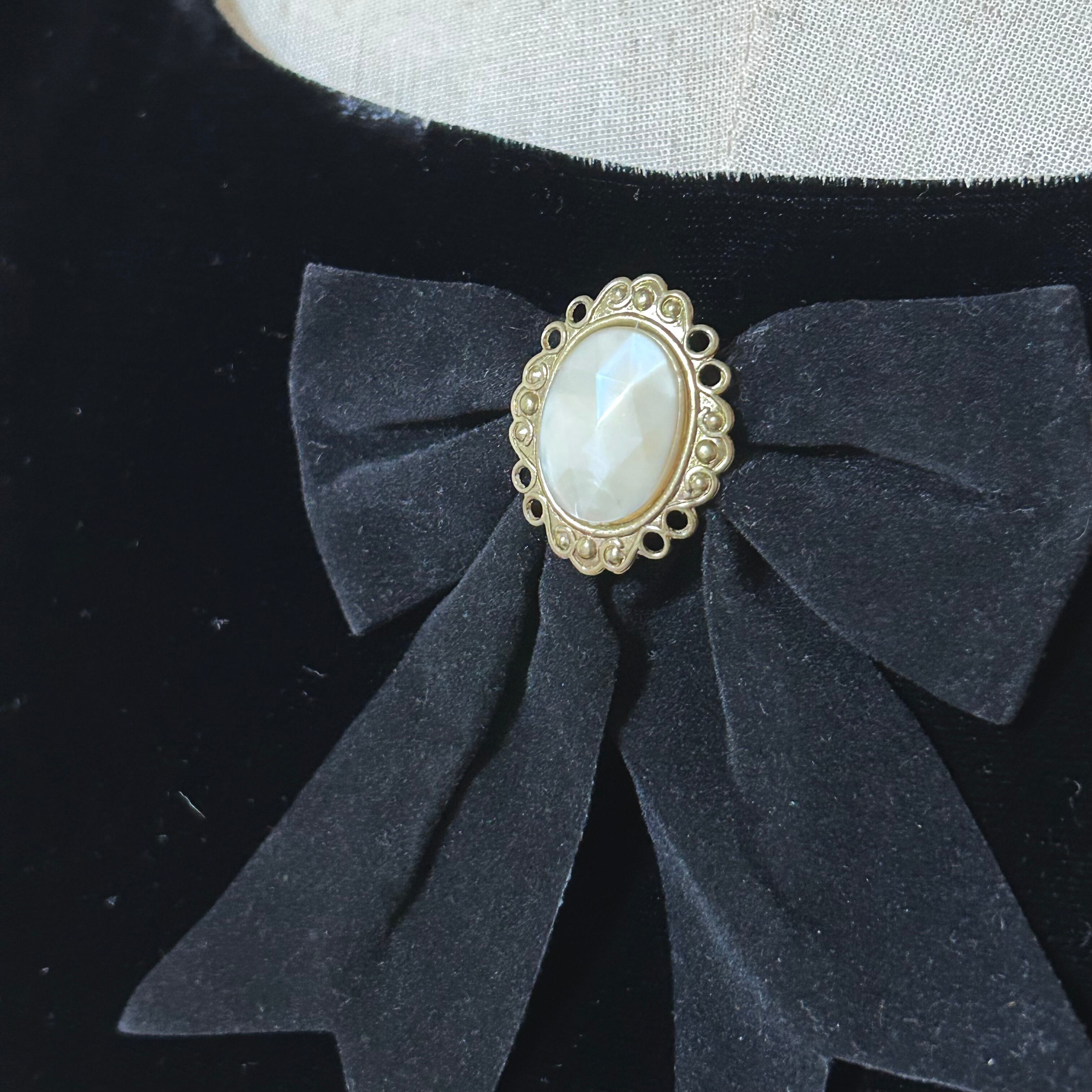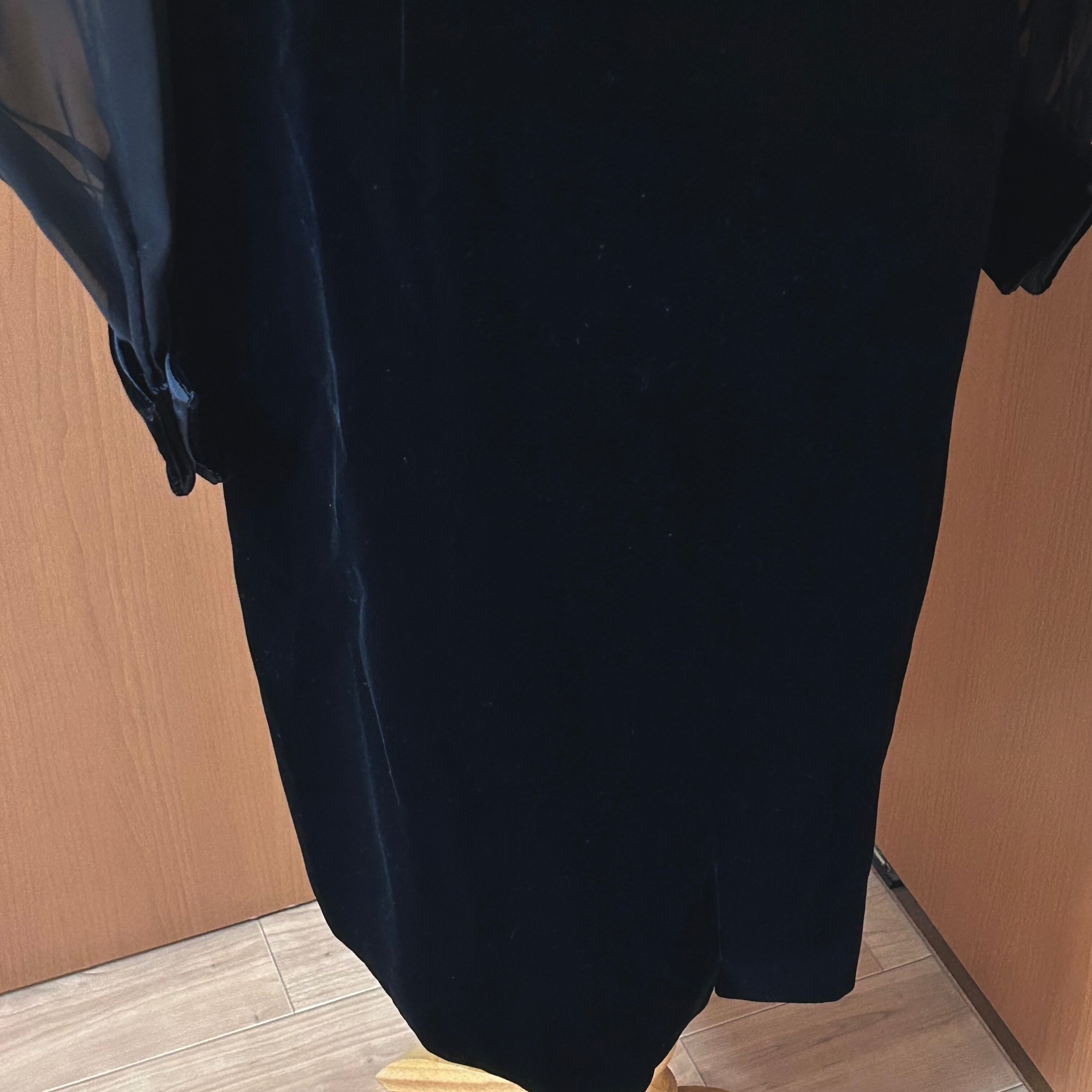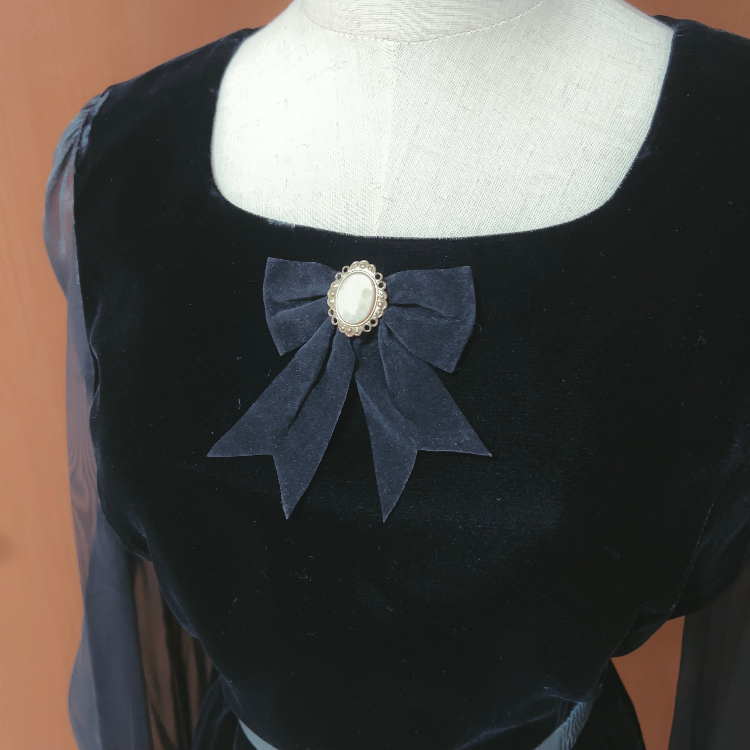 東京ソワールの日本製ヴィンテージ。ふっくらとしたベロア生地に、ラメシアーのボリュームスリーブがついた春ワンピース。リボン部分はブローチになっていて着脱可能。一部金属製。立体縫製でシルエットを美しく演出してくれます。