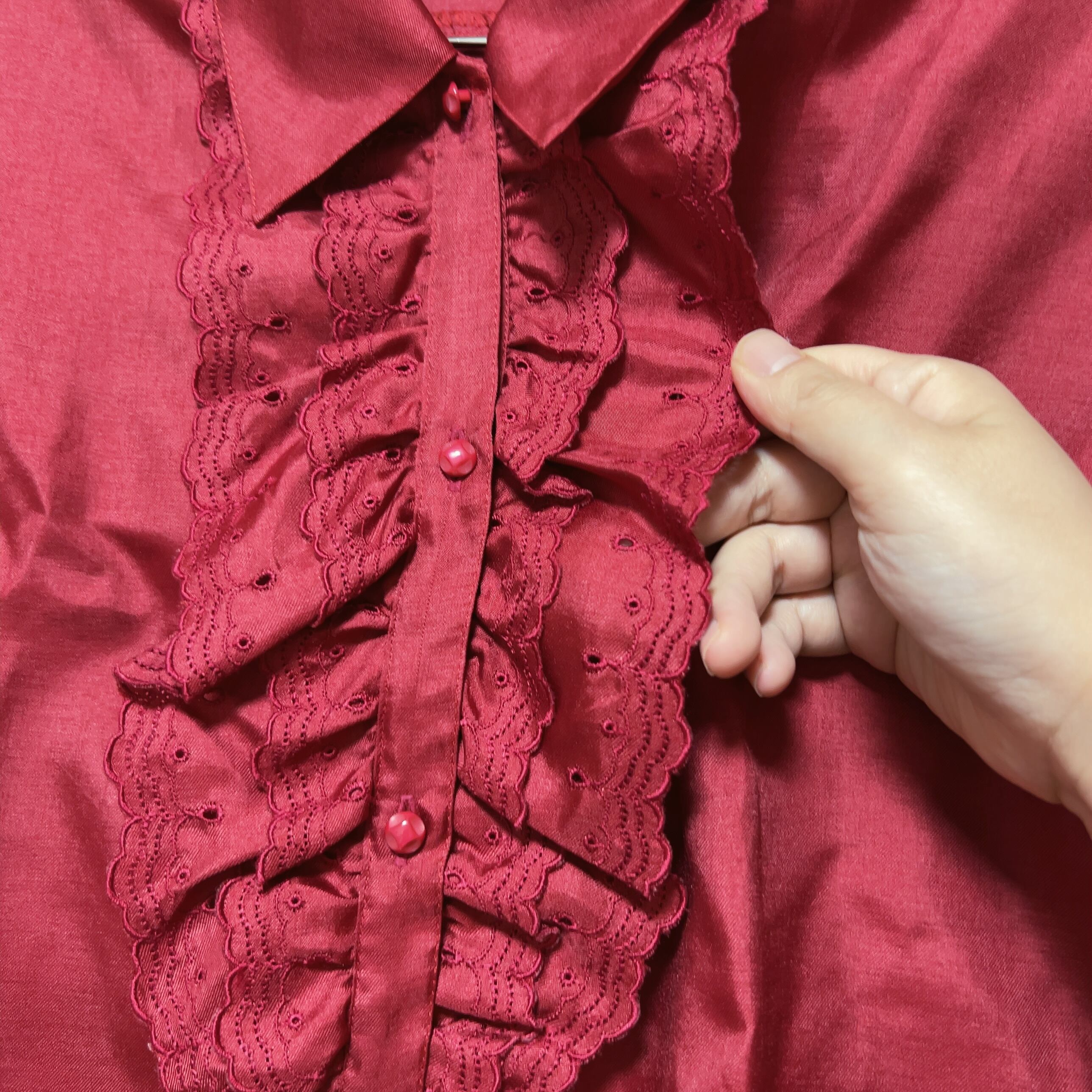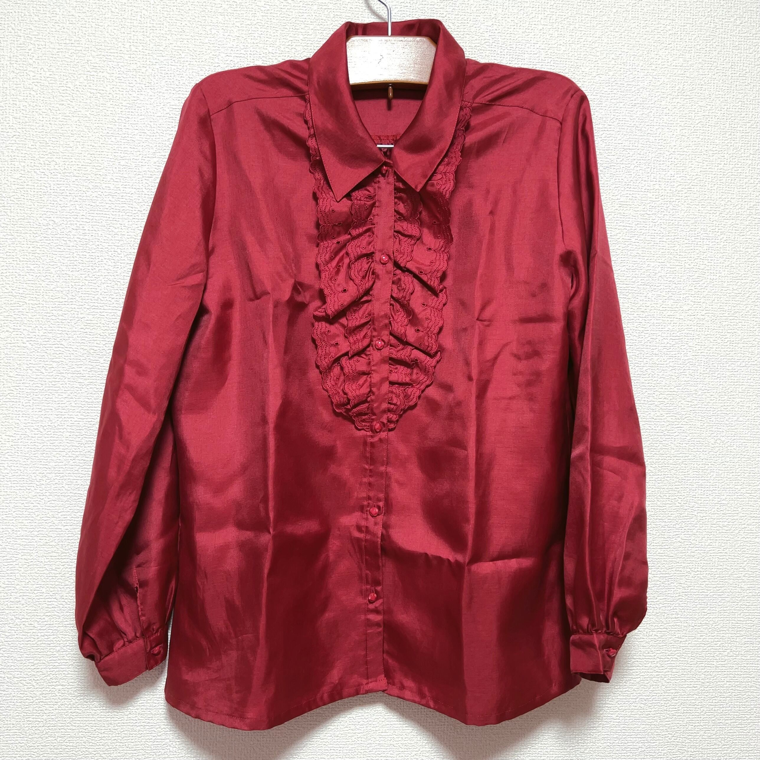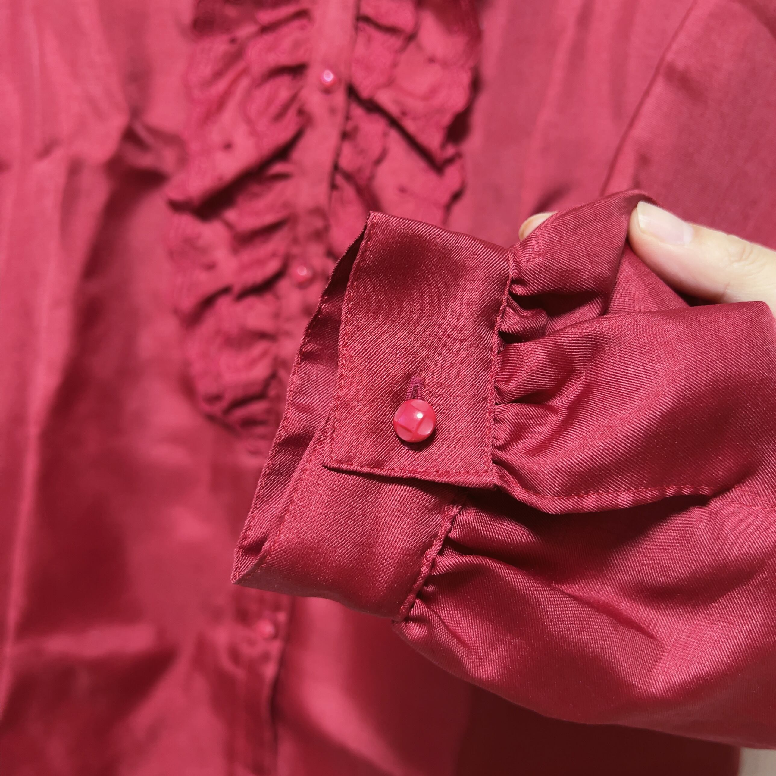 深紅にしっかりとしたフリルのひときわレトロクラシカルなブラウスです。