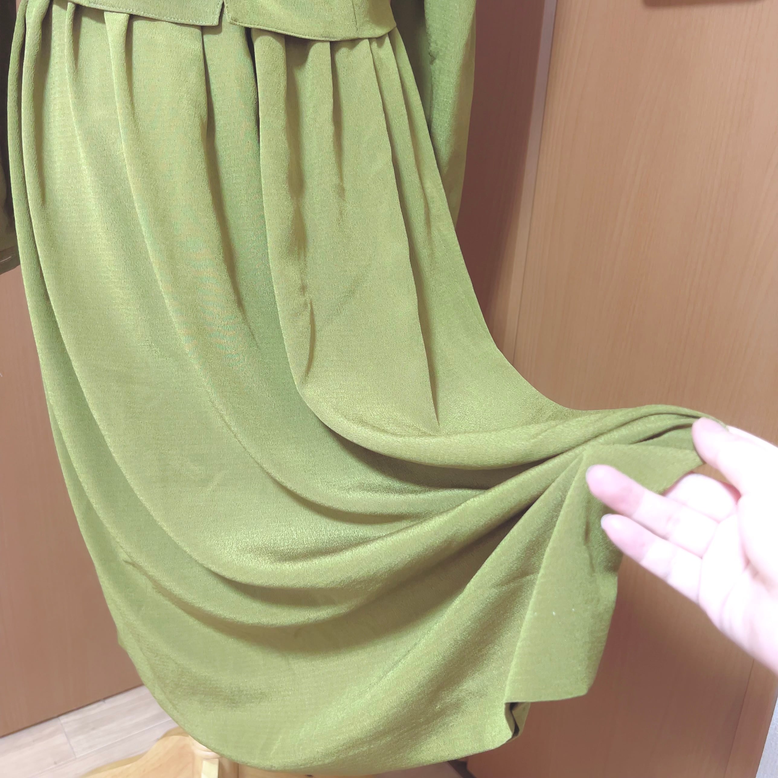 黄みの強い渋めのグリーンの生地は、少し光沢がありシャリ感のある着心地のいい感触。