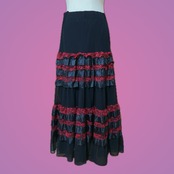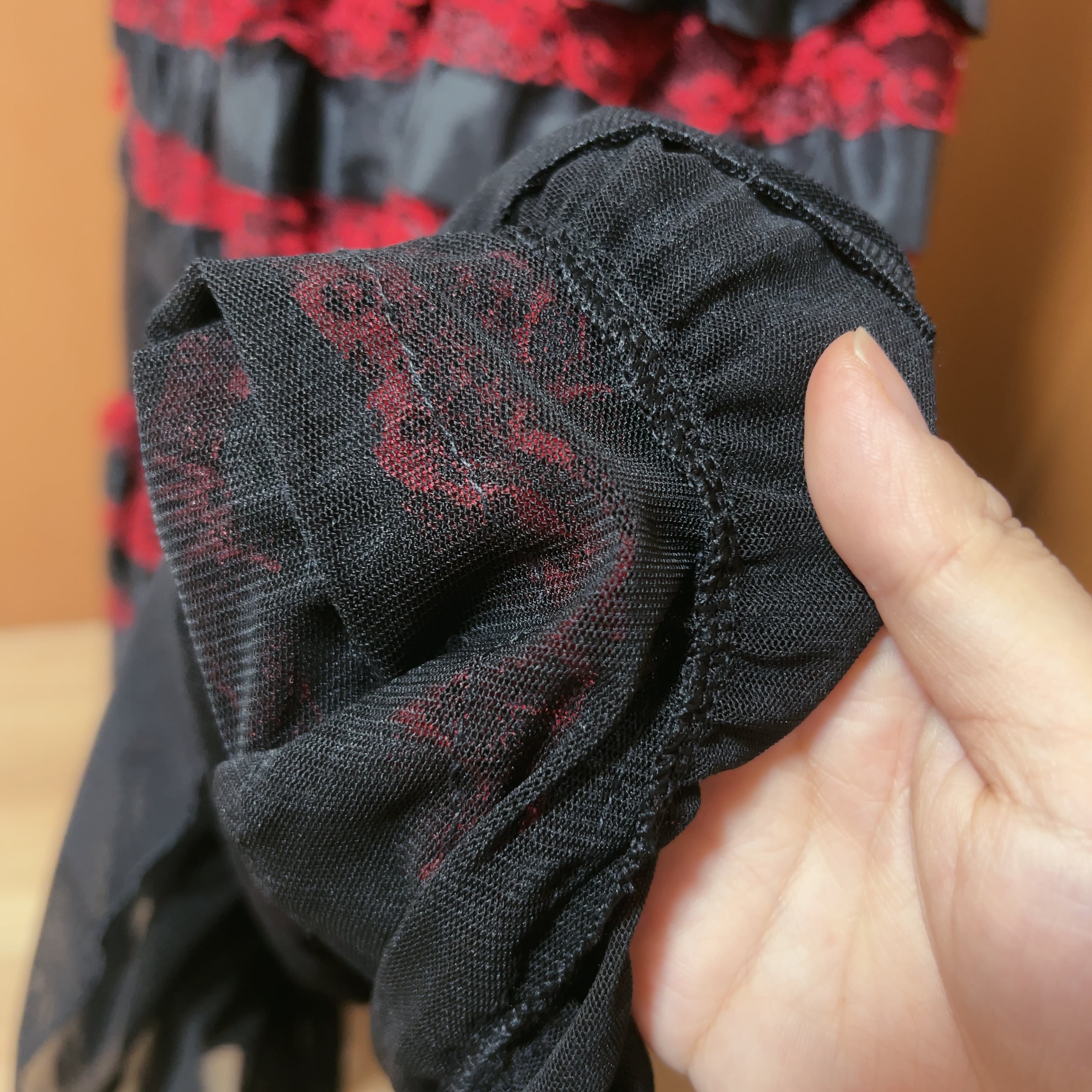 セットのアンダースカートは、黒と赤のサテンが影のように艶めき、透けるチュールの奥で静かに存在感を放ちます。
