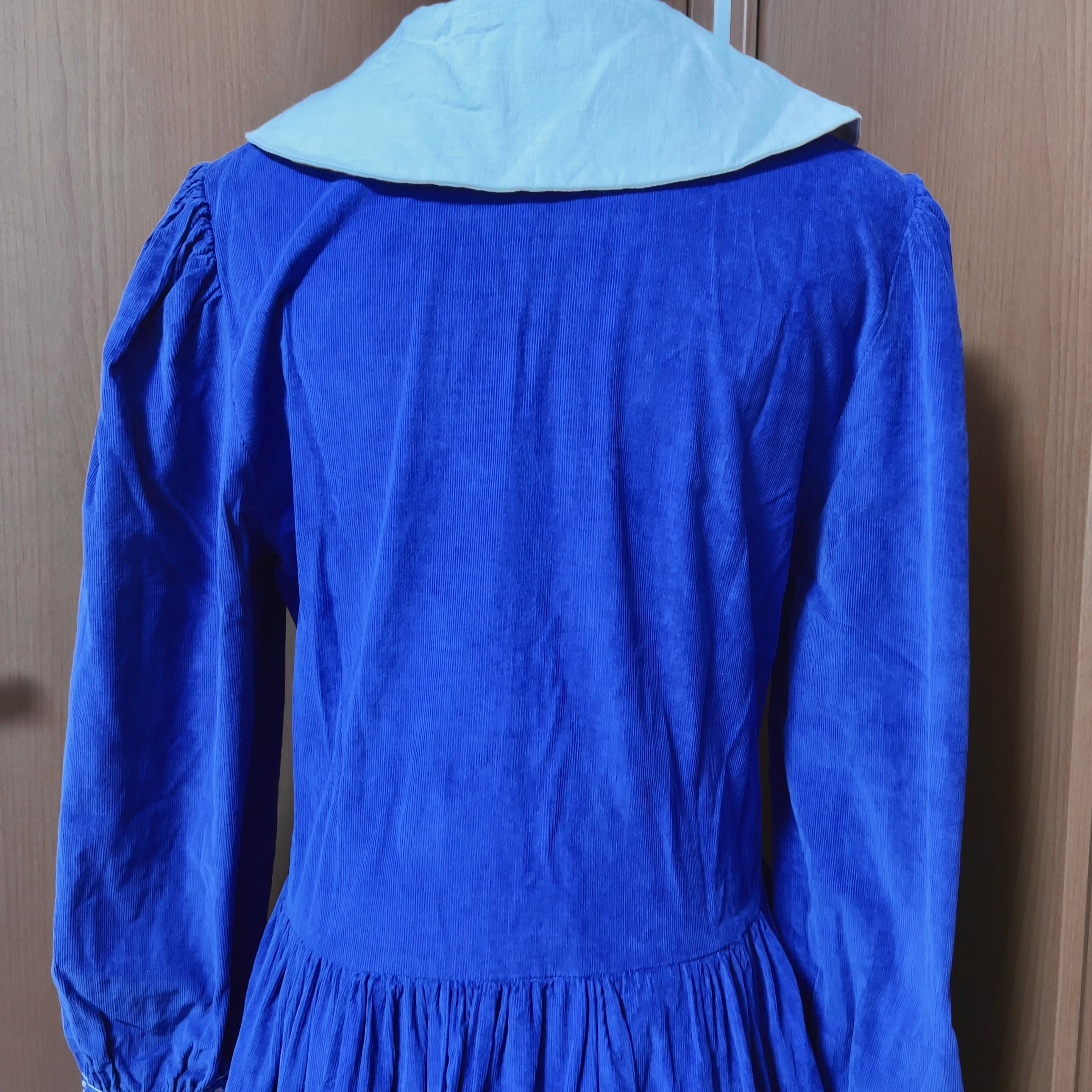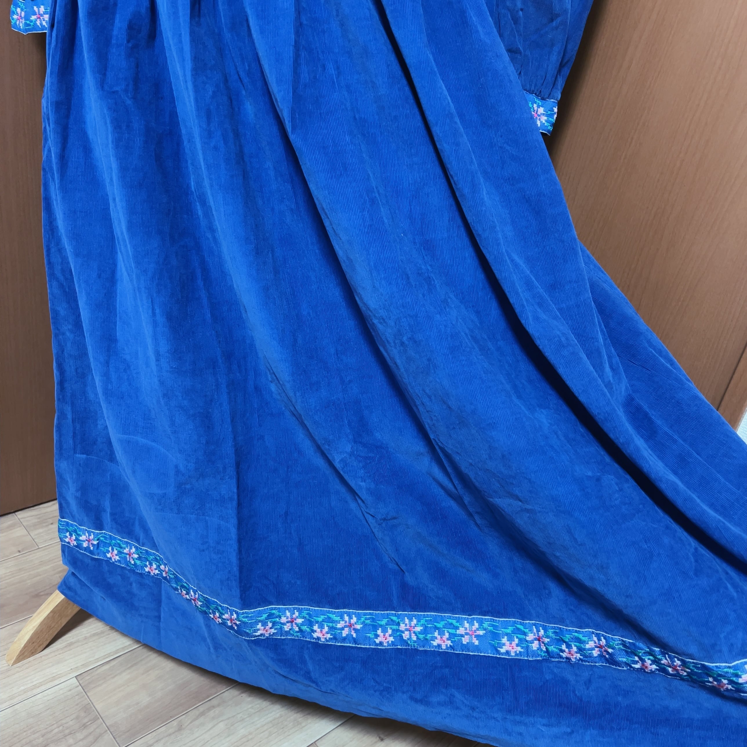 鮮やかなアルプスブルーのコーデュロイ生地が、谷に吹く爽やかな風をそのまま閉じ込めたようなフレアワンピース。