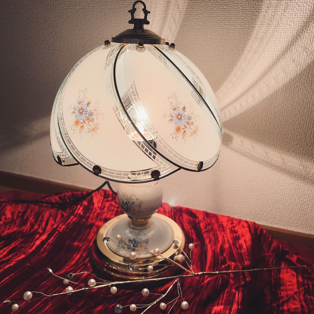 ガラスシェードを備えたクラシカルなテーブルライトです。