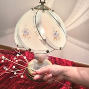 ガラス部分に目立つ欠けや割れは見られません。電球および点灯中のガラスシェードは熱くなりますのでご注意ください。