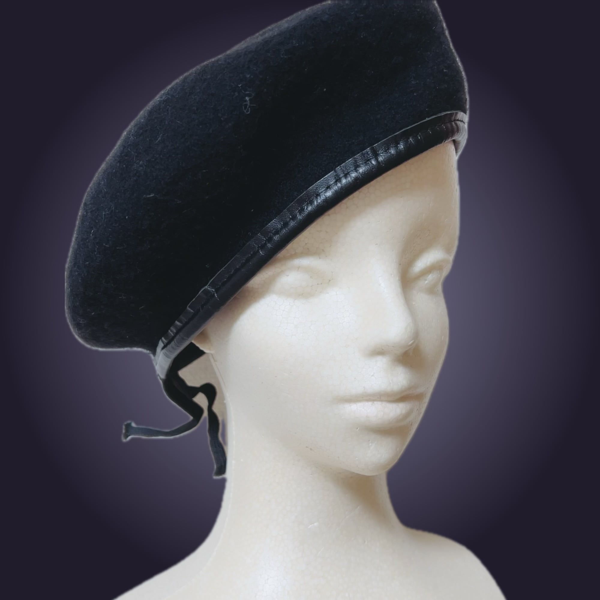 ウール100%ブラックベレー帽。