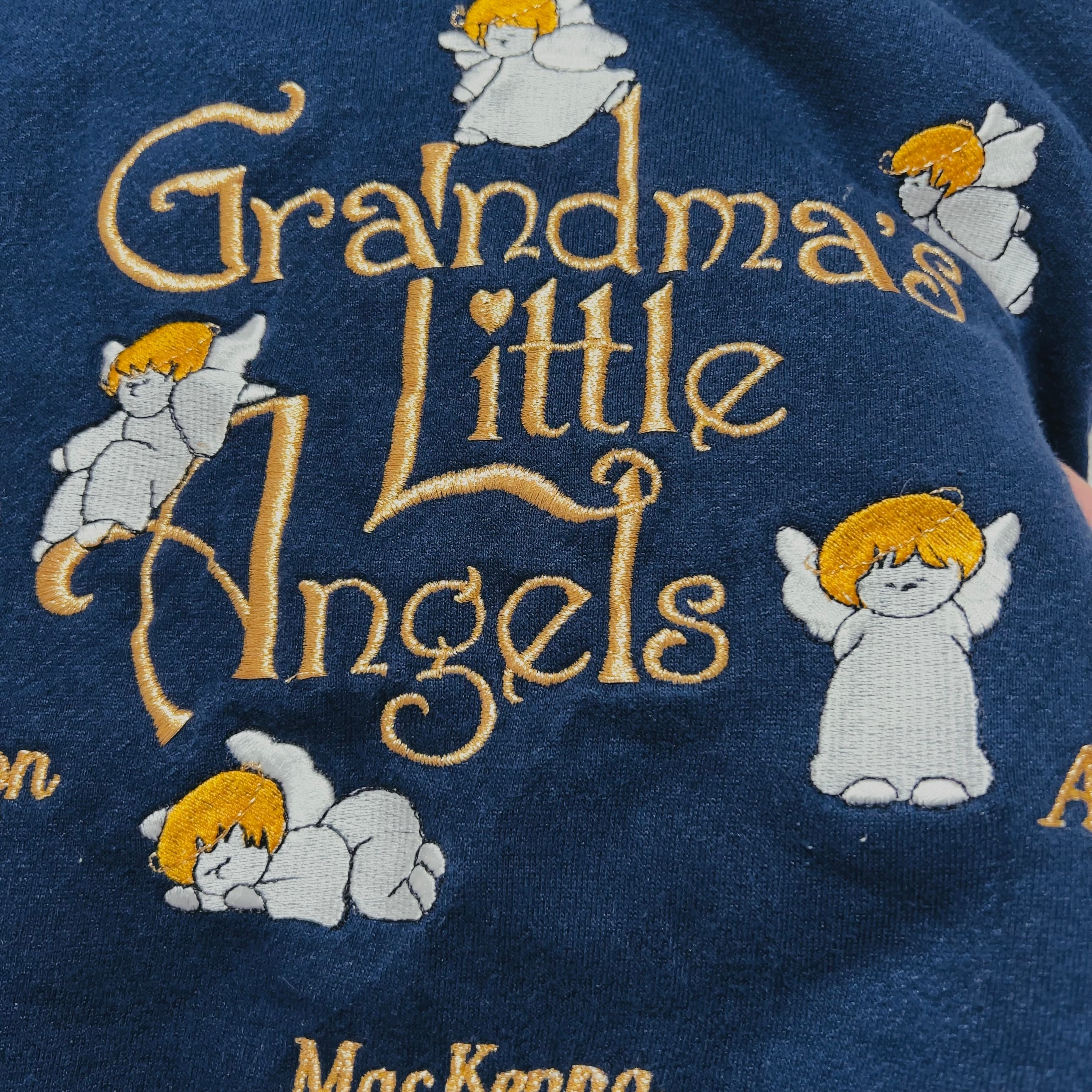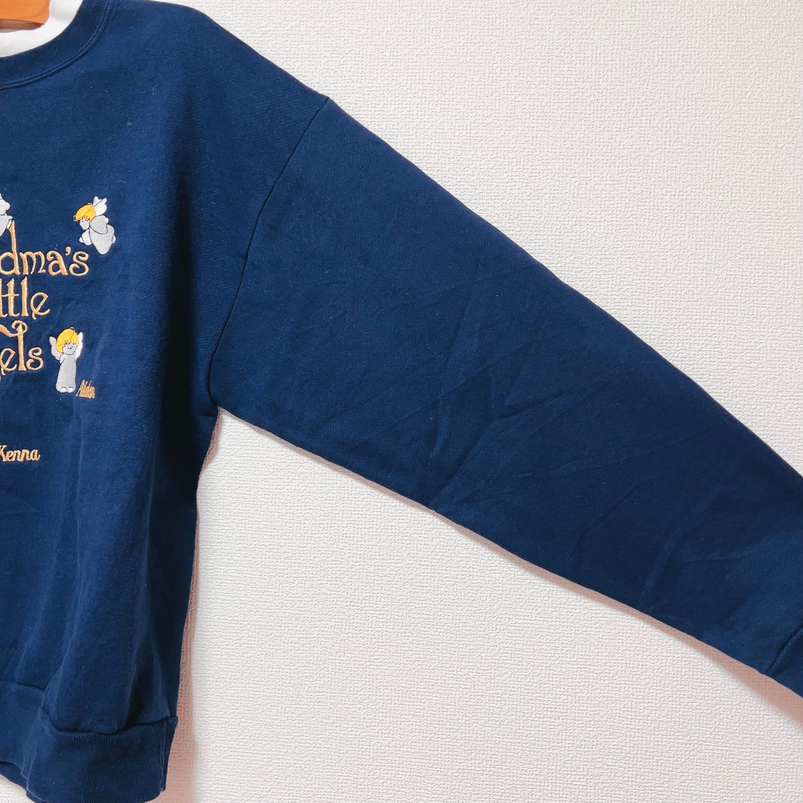 ふかふかのネイビー生地に天使や金刺繍が飛び交うレトロなデザイン。