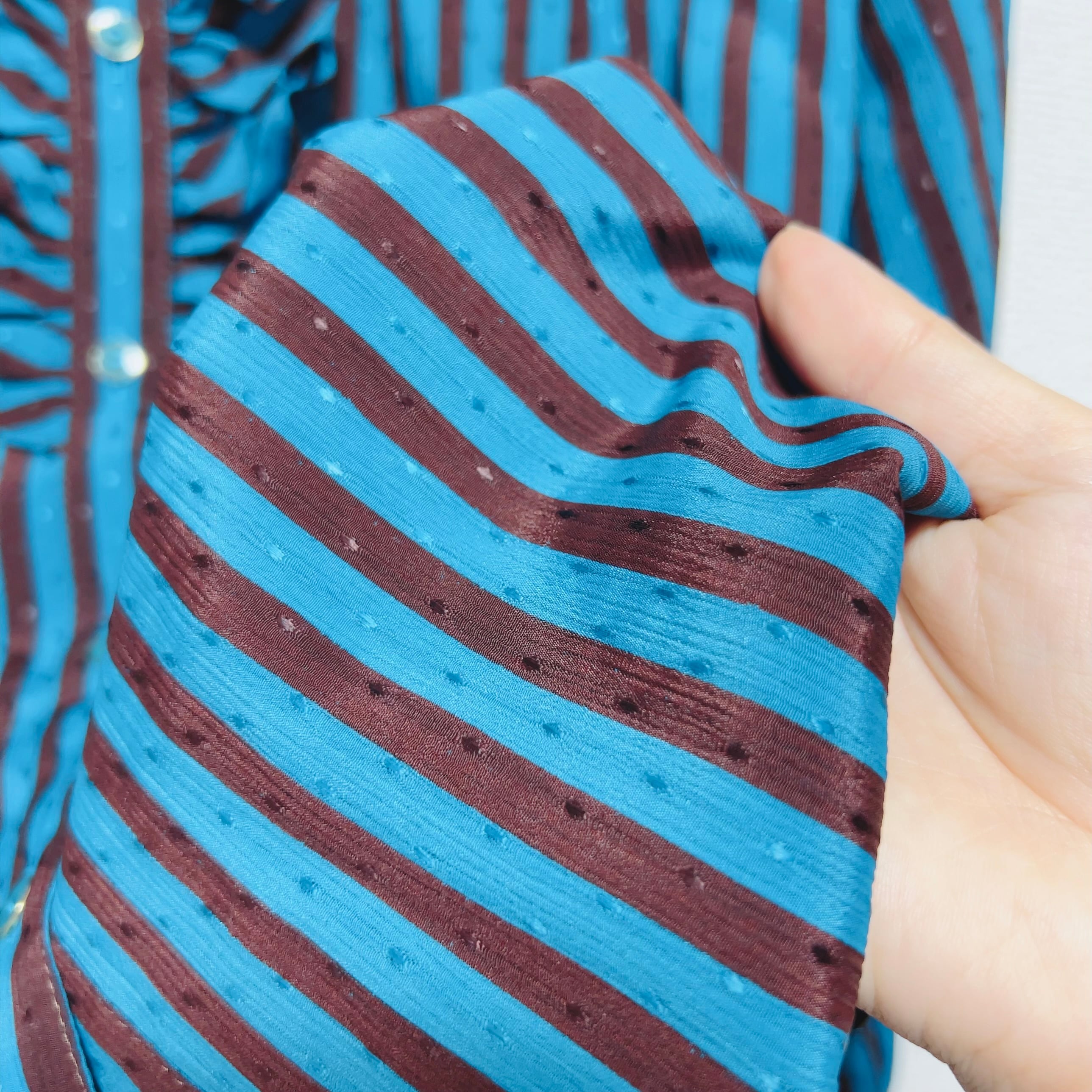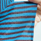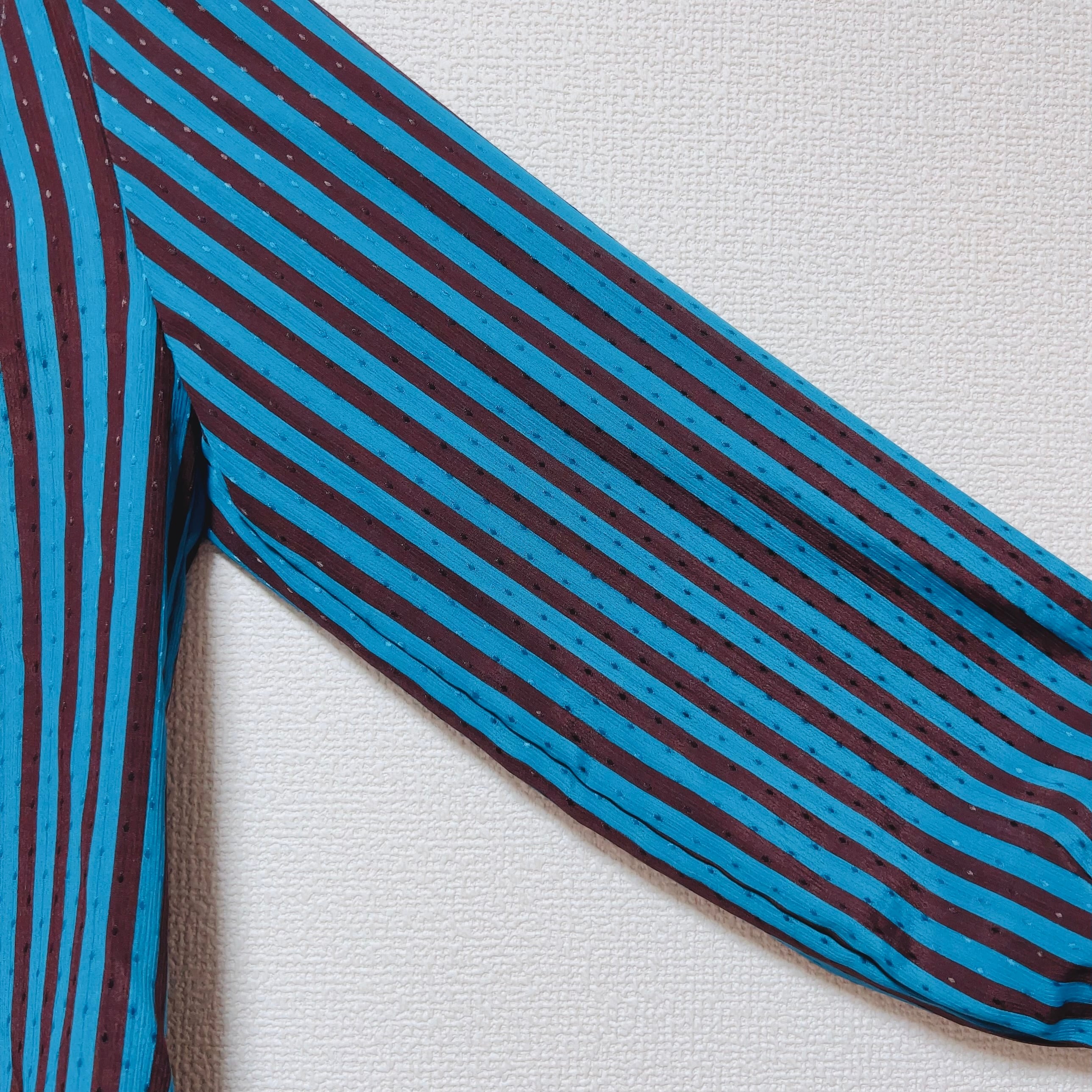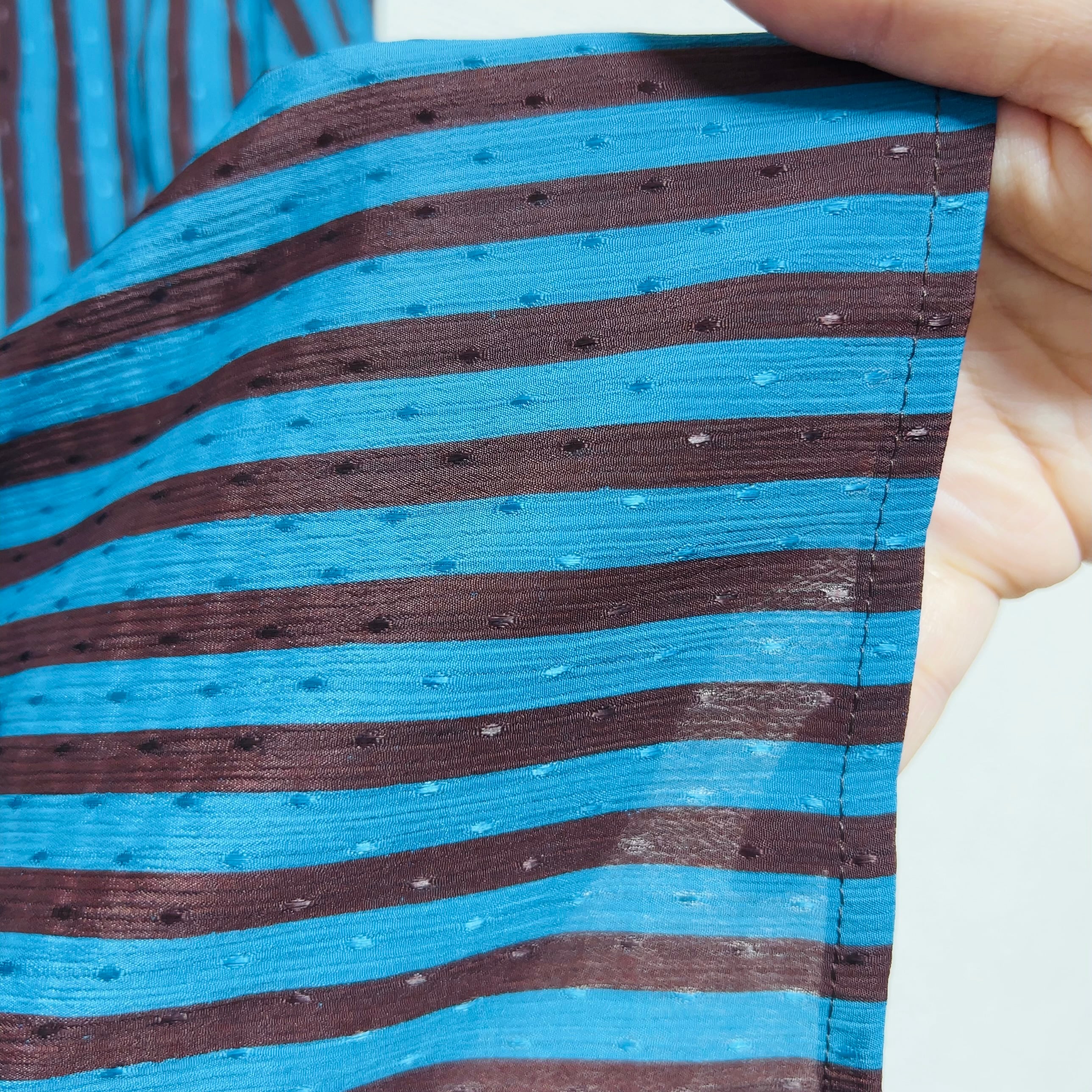 セルリアンブルーとブラウンが交差する、チョコミントを思わせるストライプ。