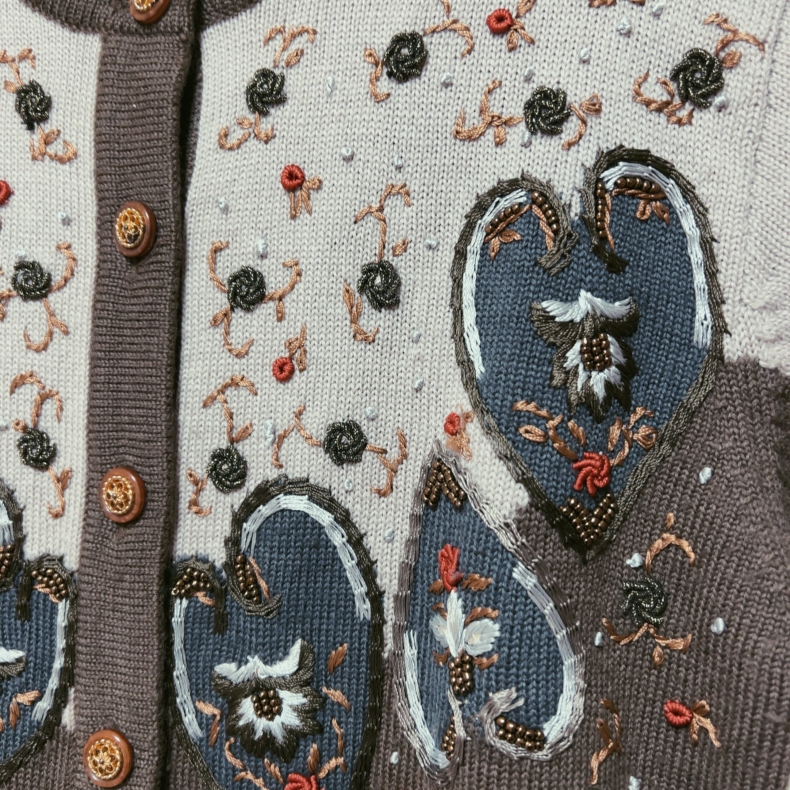 花やハートのモチーフが落ち着いたアースカラーに落とし込まれているので、ガーリーになりすぎず上品な仕上がりになっています。