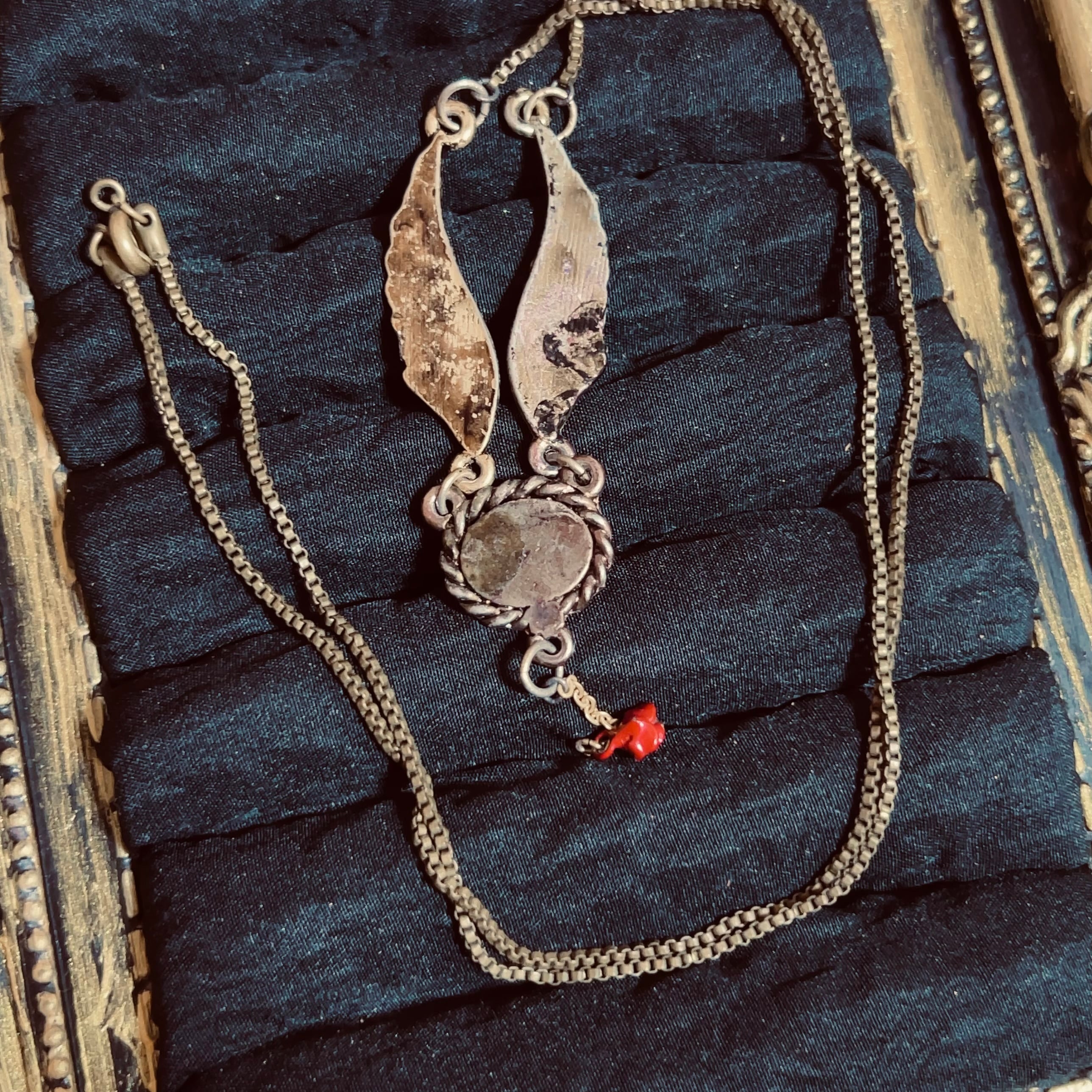 垂れ下がるのは小さな薔薇と、輝く赤いストーン。