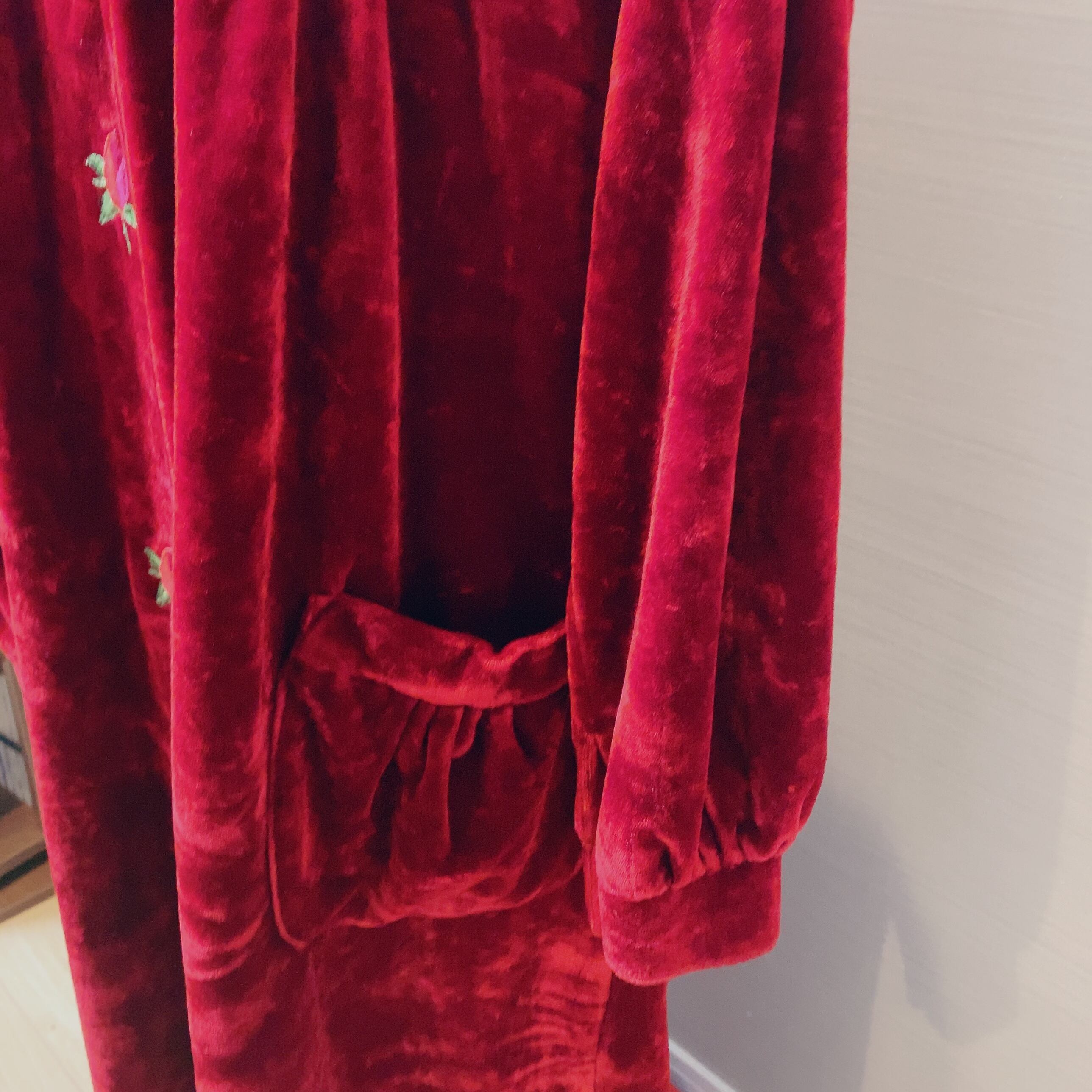 薔薇のつぼみの刺繍が三つ並び、生地の落ち感もゆったりとしたシルエットも最高の1着。