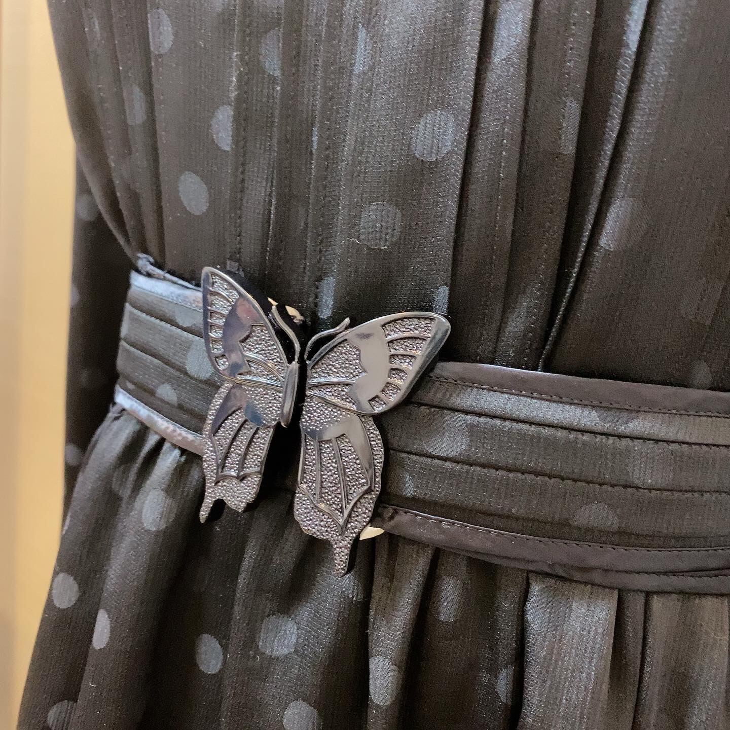 光沢のある生地の中に浮かぶドット柄と、身体を細く見せるピンタック。