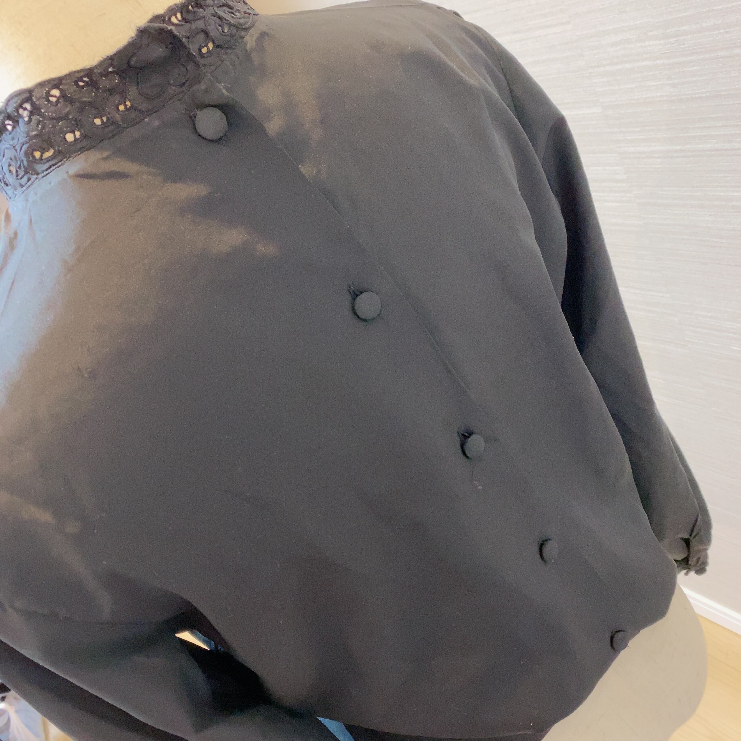 サテンと刺繍のブラックブラウス