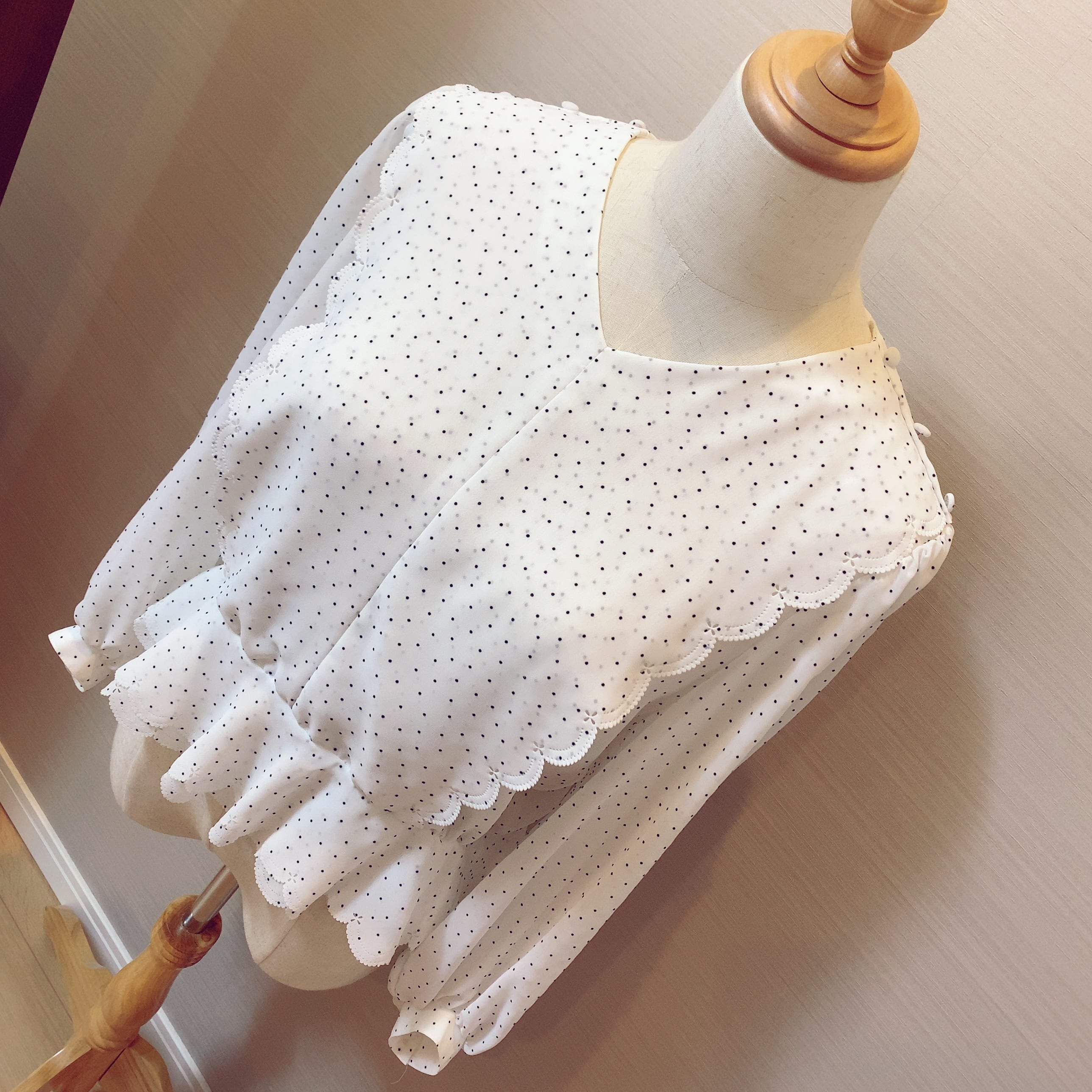 端がスカラップ処理されていて、バックスタイルも裾のすぼまりも可愛らしい一枚です。