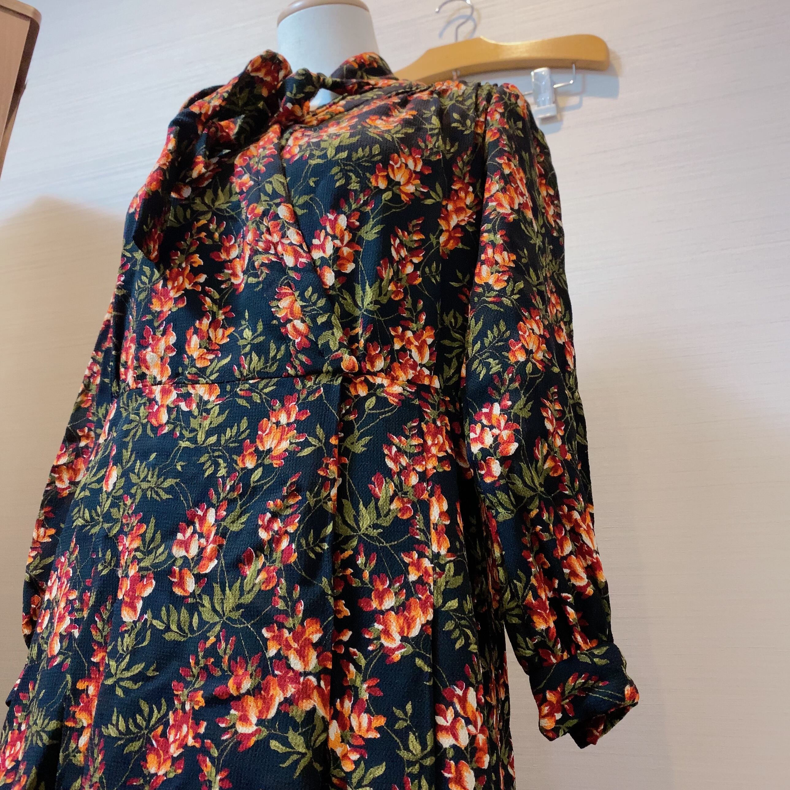 スカート部分はこのタイプのワンピースには珍しいボックスプリーツ。縦ラインが強調されます。