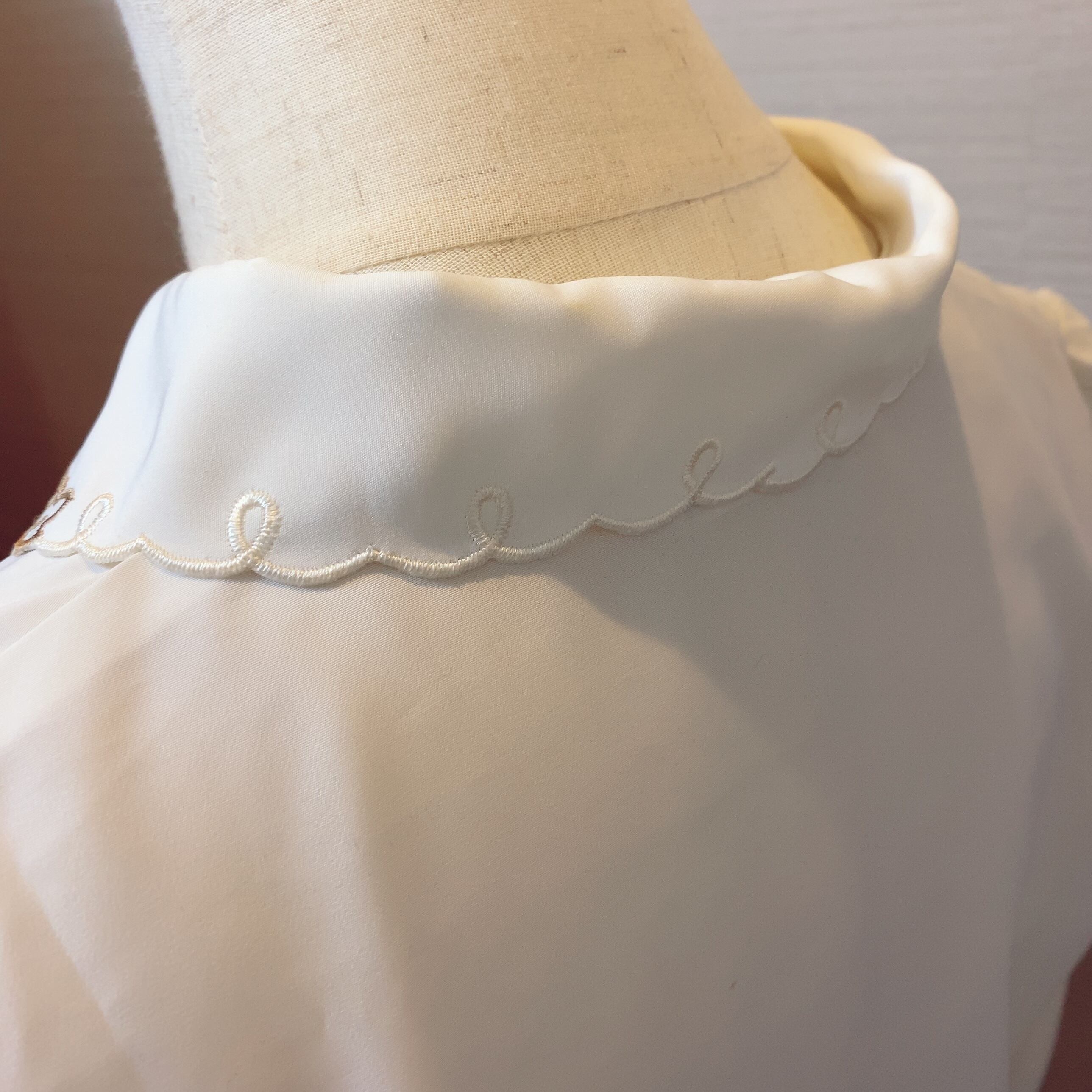 花と木の葉の刺繍でデザイン性の高いブラウス。