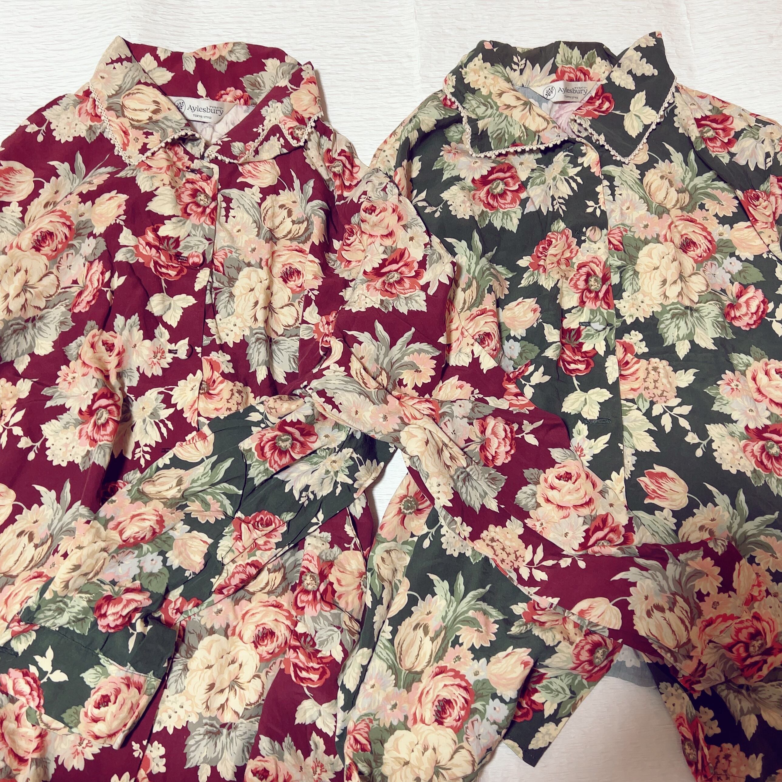 バーガンディーカラーに花が咲き乱れるブラウス。