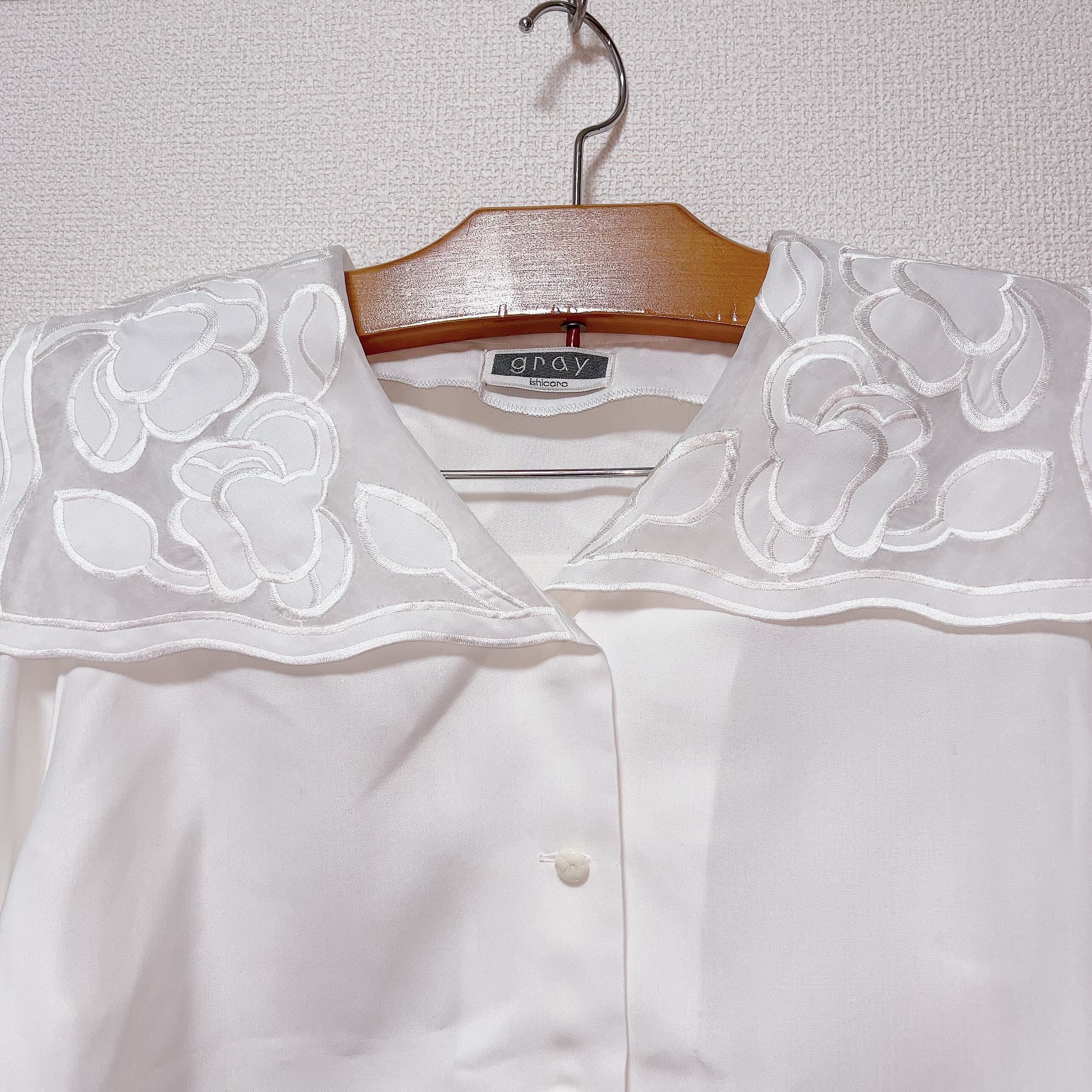 セーラーカラーになっており、透かしは薔薇の模様。袖幅が広くふわんとしたボリュームがあります。