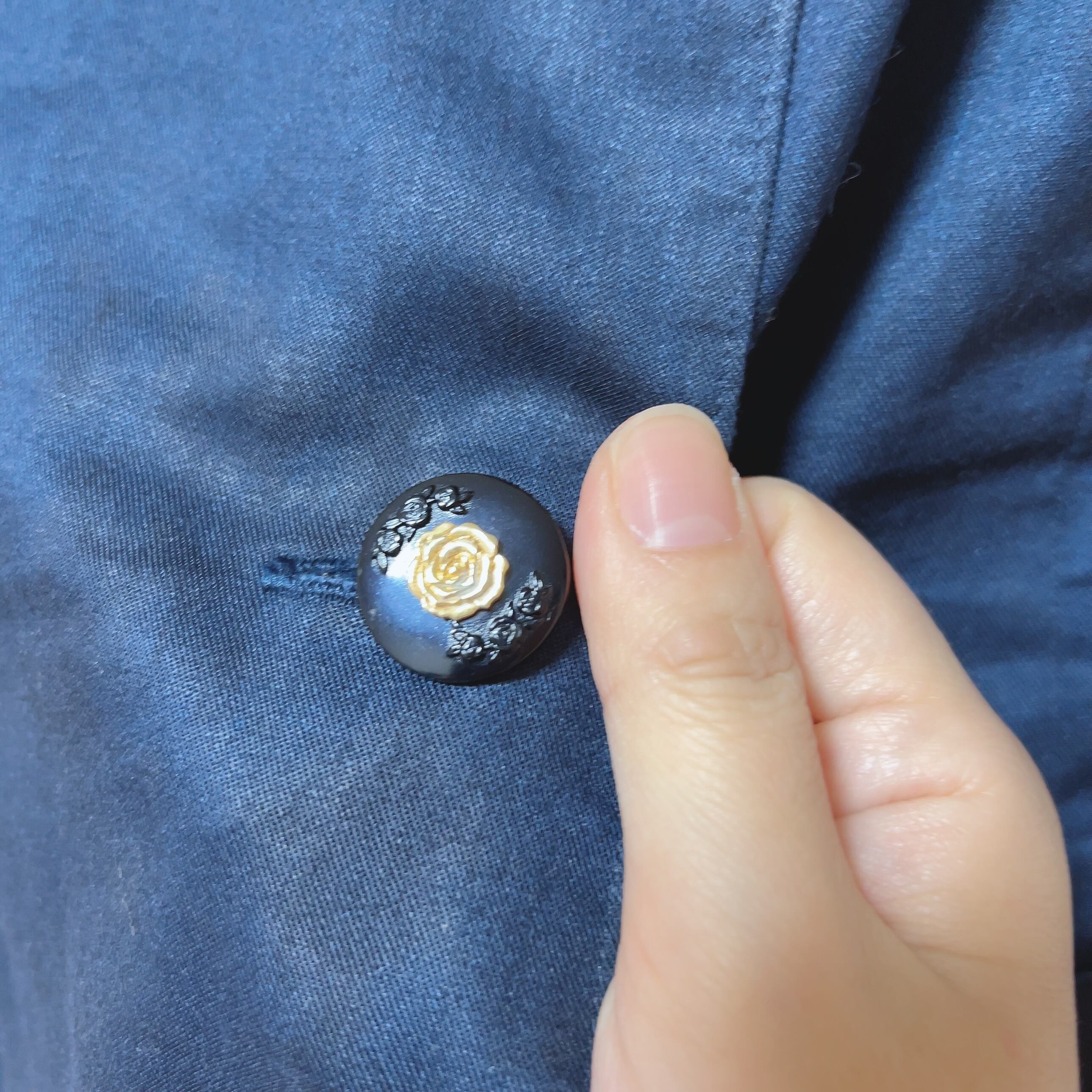 丸い襟は二重構造で、花柄の生地が挟んであります。