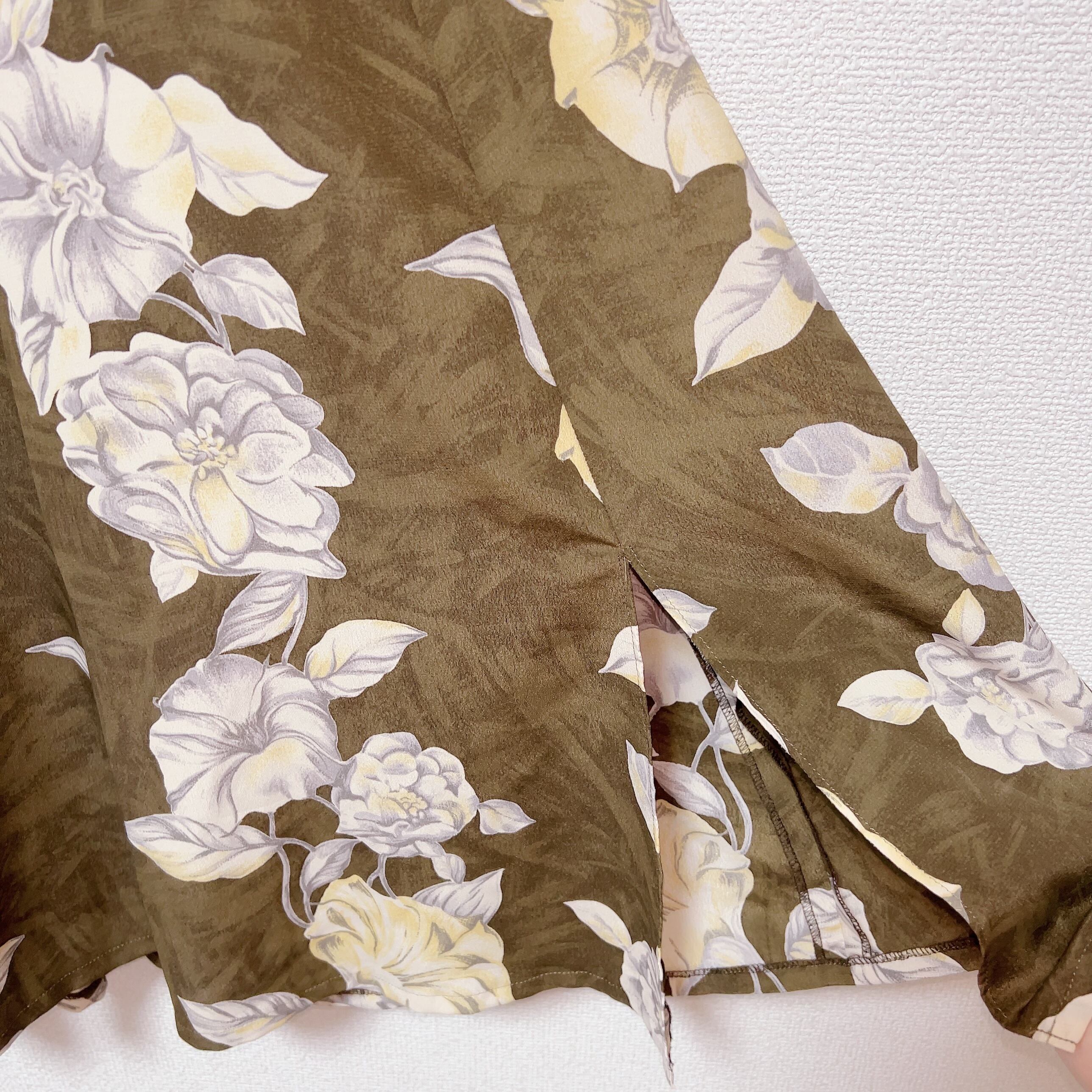 フロントに二つのスリットが入ったヴィンテージスカート。オリーブ〜カーキグリーンの色合いが珍しい。