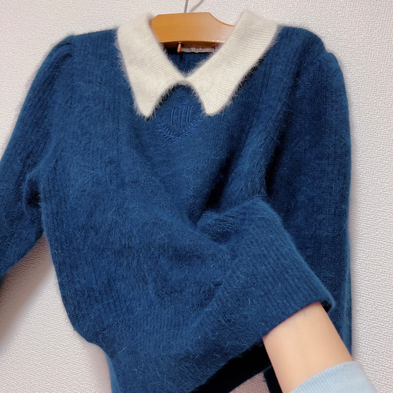 憂鬱な月曜日を吹き飛ばす、ネイビーのヴィンテージシャギーニット。