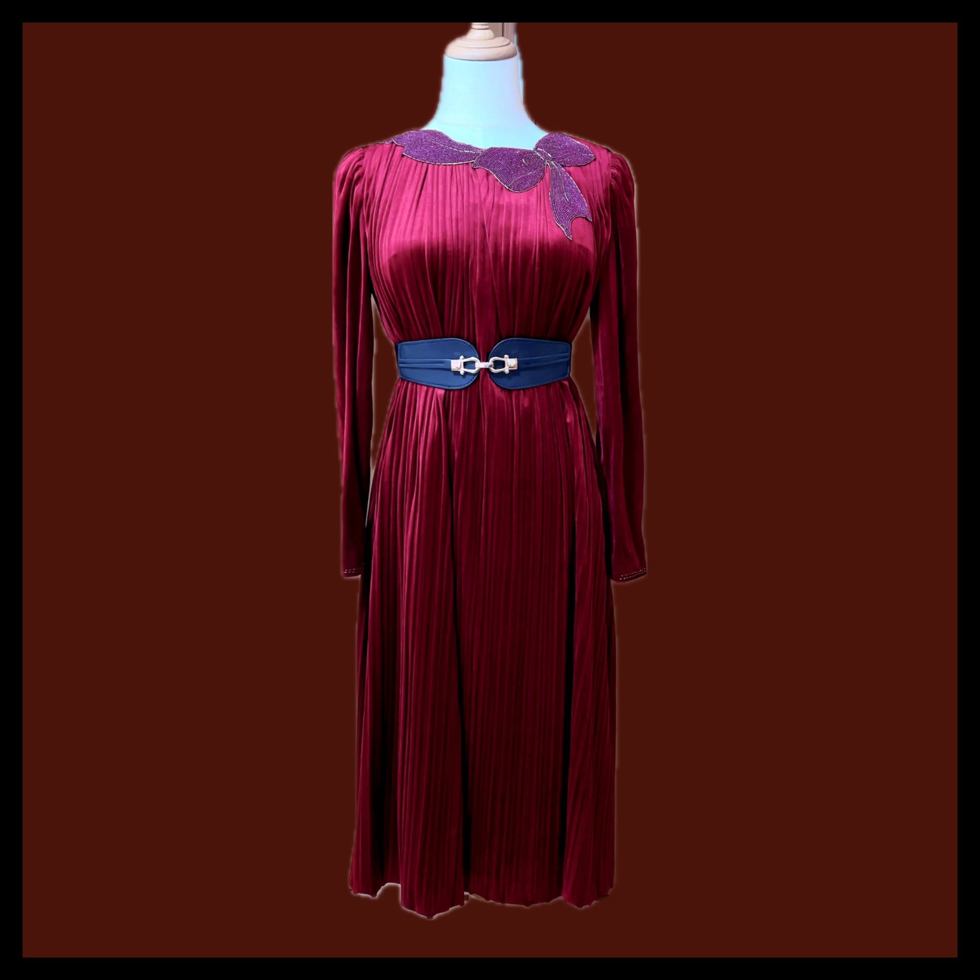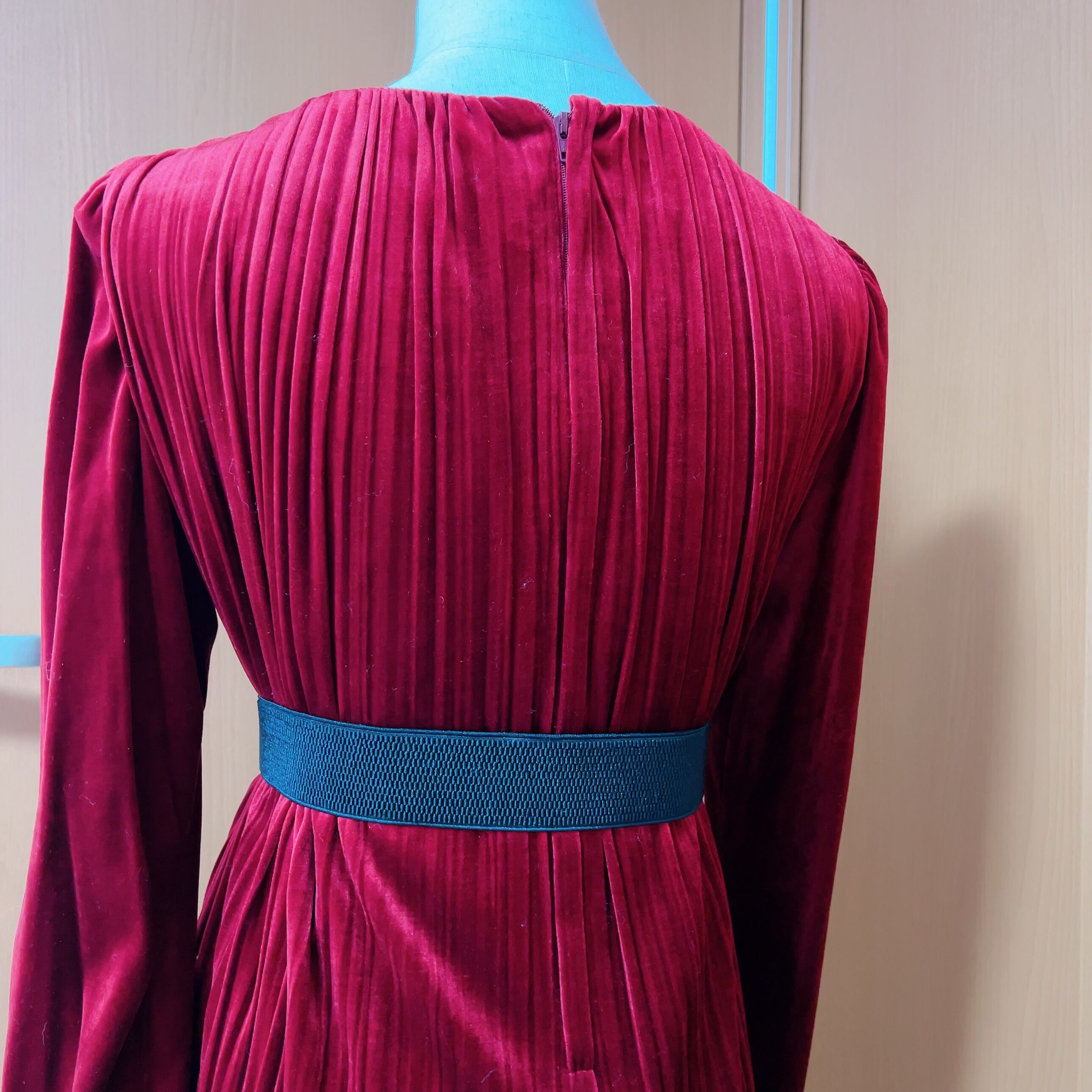 プリーツのしっかり残ったしなやかなベロア生地が美しい。