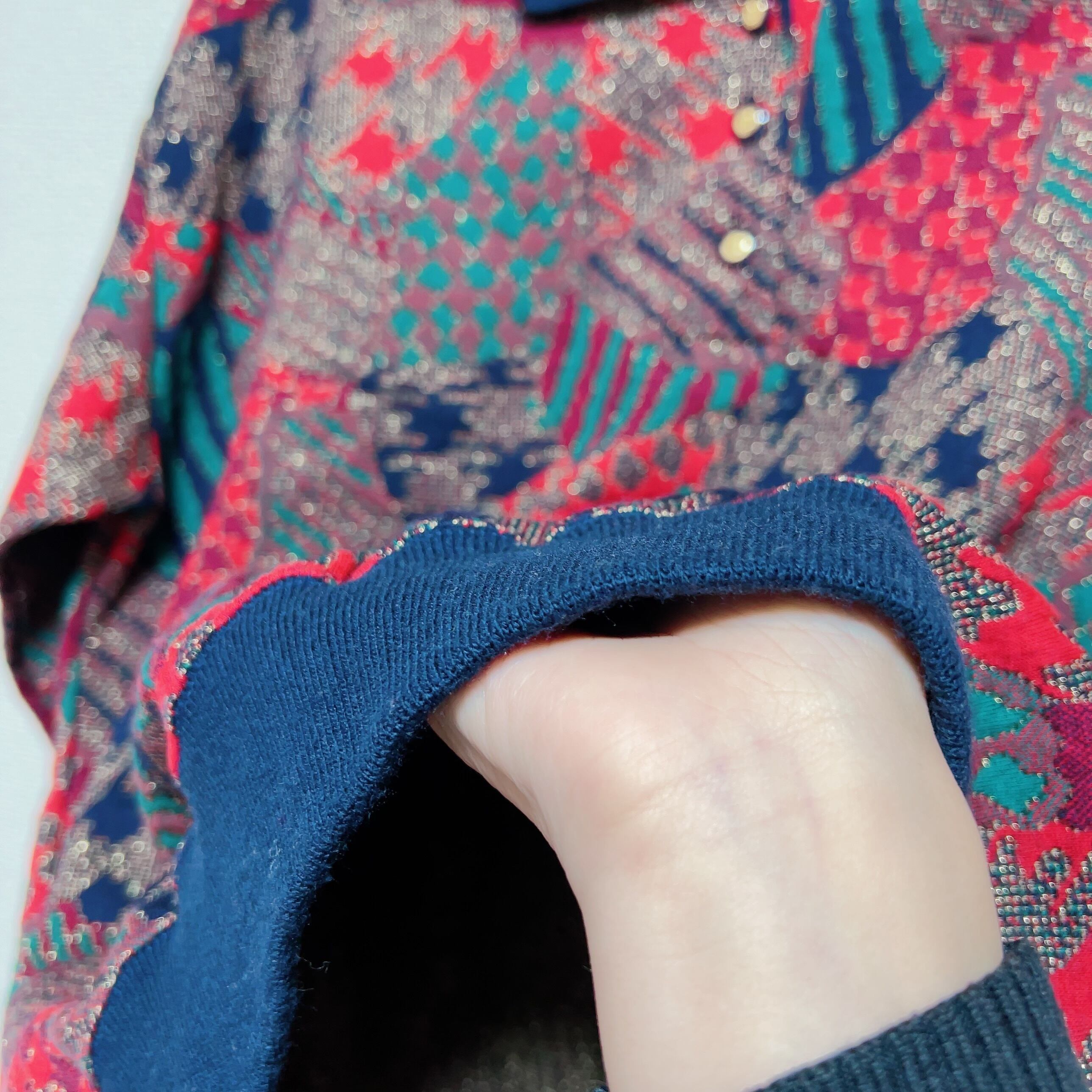 柄が個性的ですが、落ち着いた色がベースでボトムスには困りません。