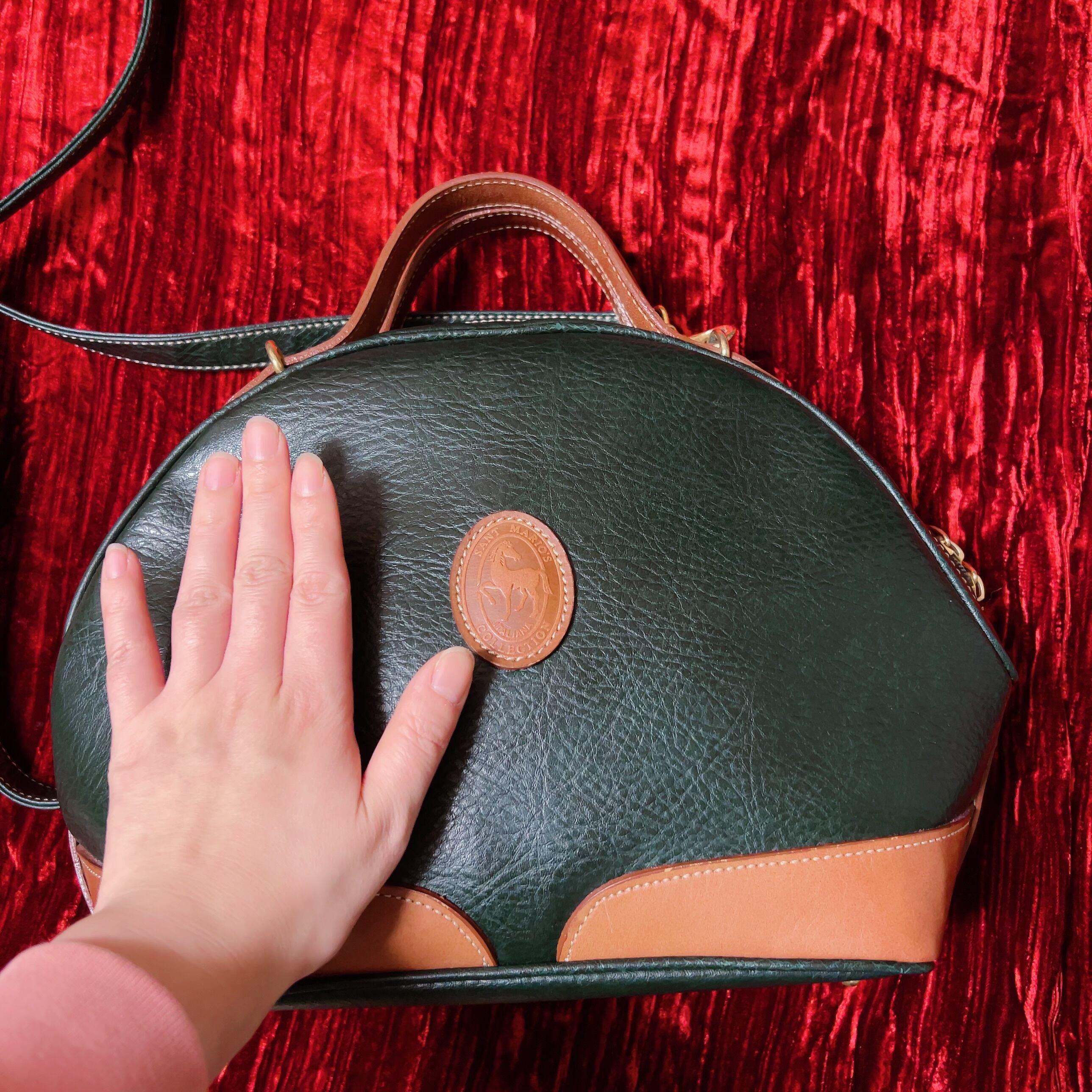 しっとりと柔らかなブラックグリーンのボディに、頑丈なレザーパッチ。