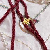 触るとひんやりする大ぶりストーン。ガラス製の可能性もありますが、藤色と夕陽色が混ざり合う神秘的なカラーです。