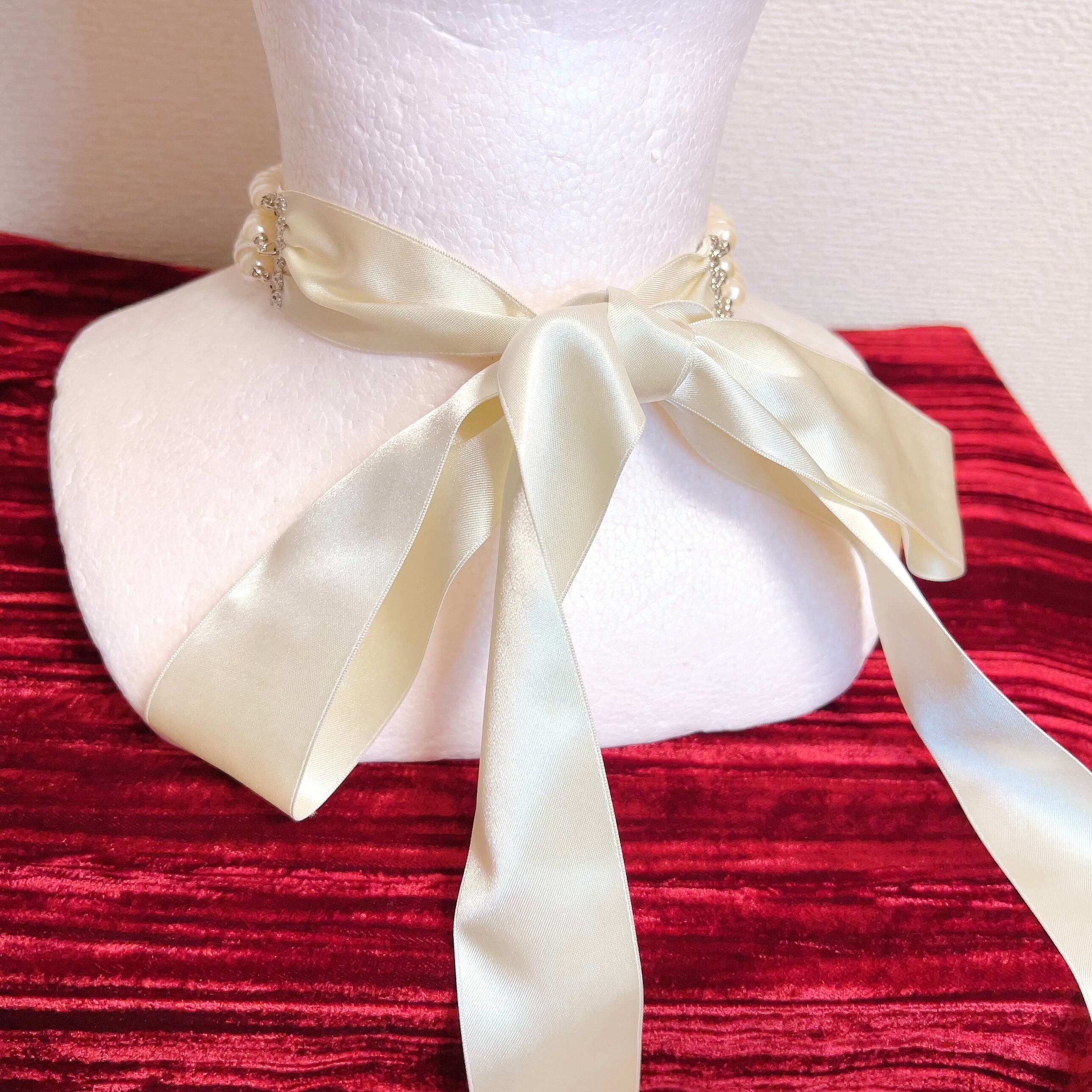 リボンで結ぶタイプなので首囲に関係なくつけることができます。