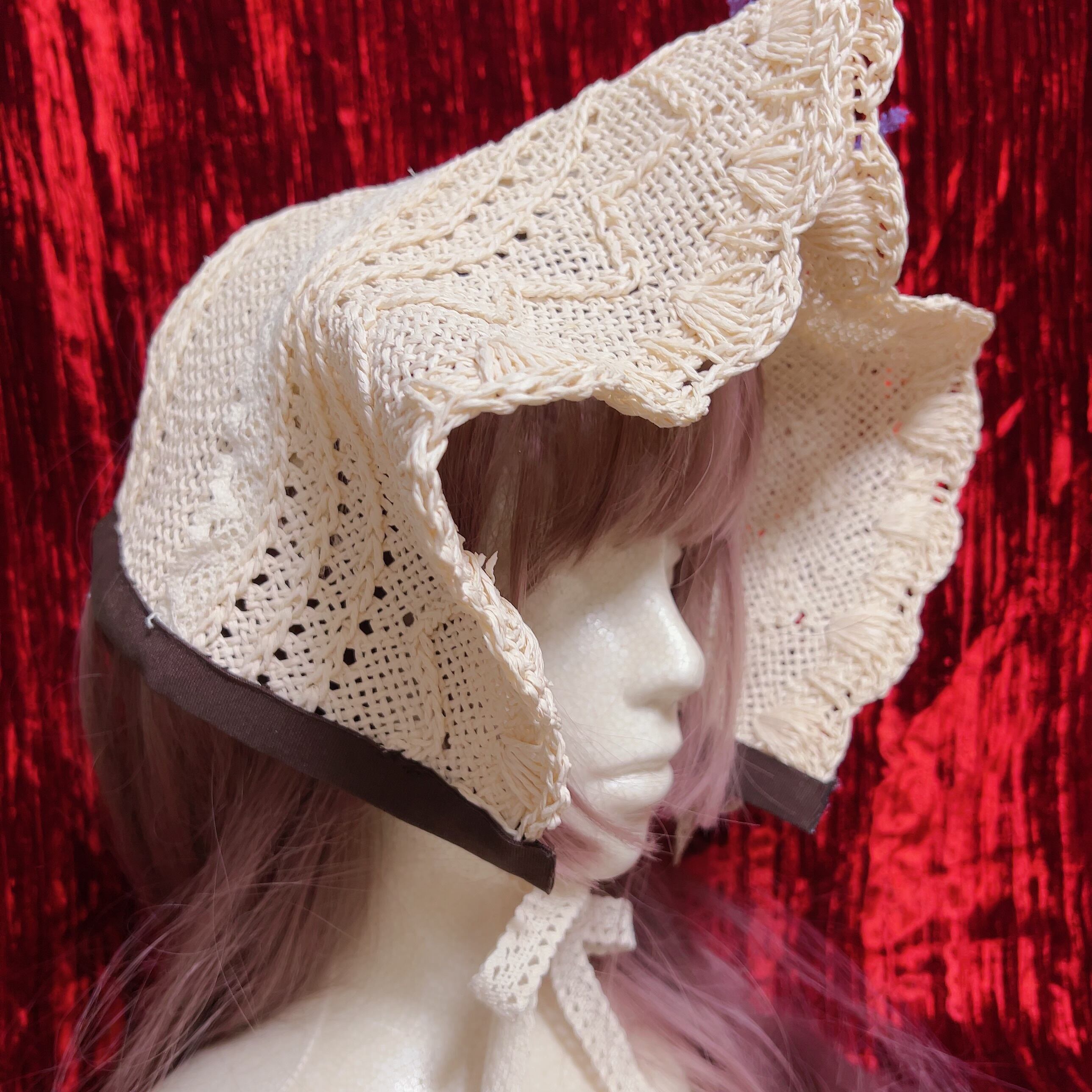 ハーフボンネットの雰囲気がある、ヴィンテージ風のリメイクを施したヘッドドレス。