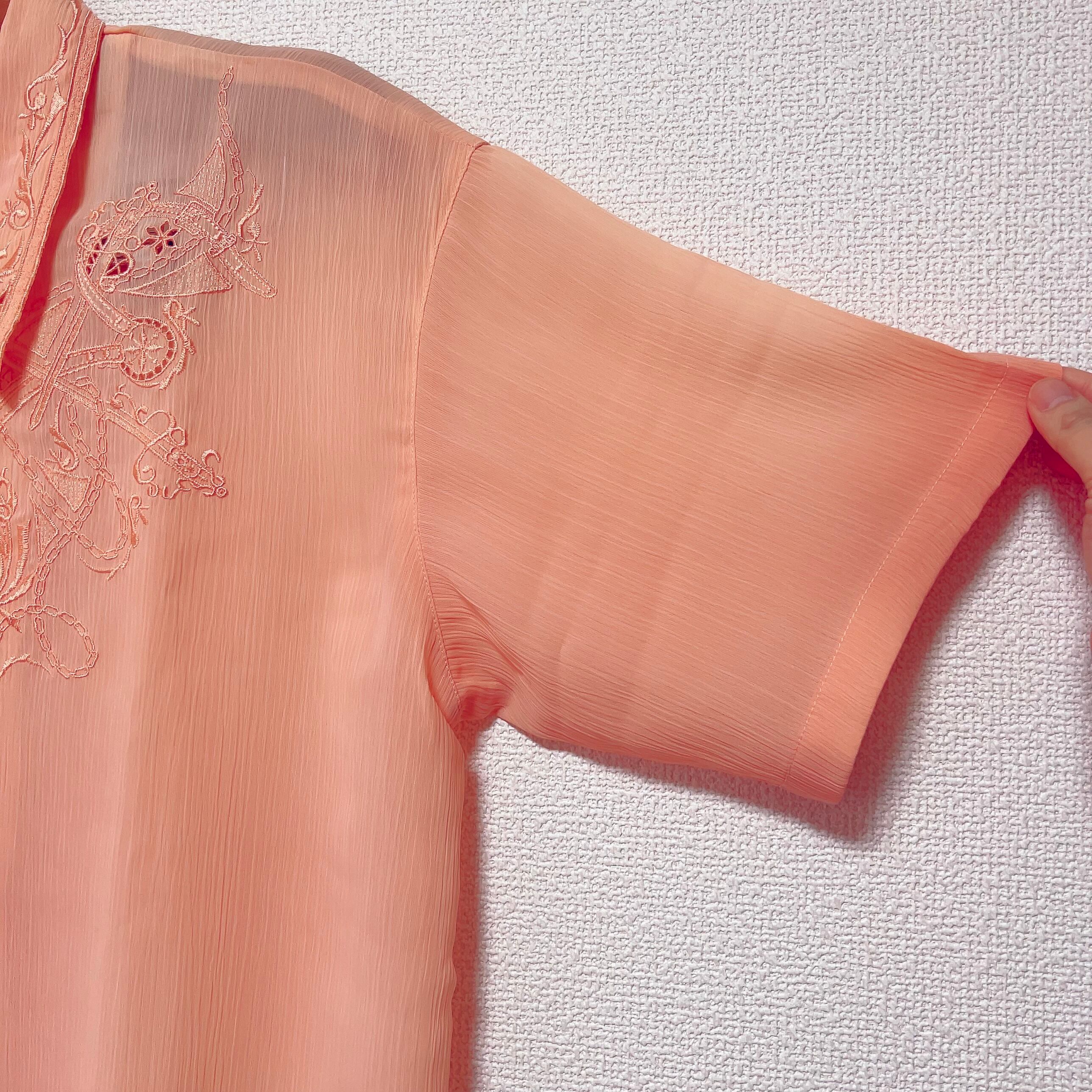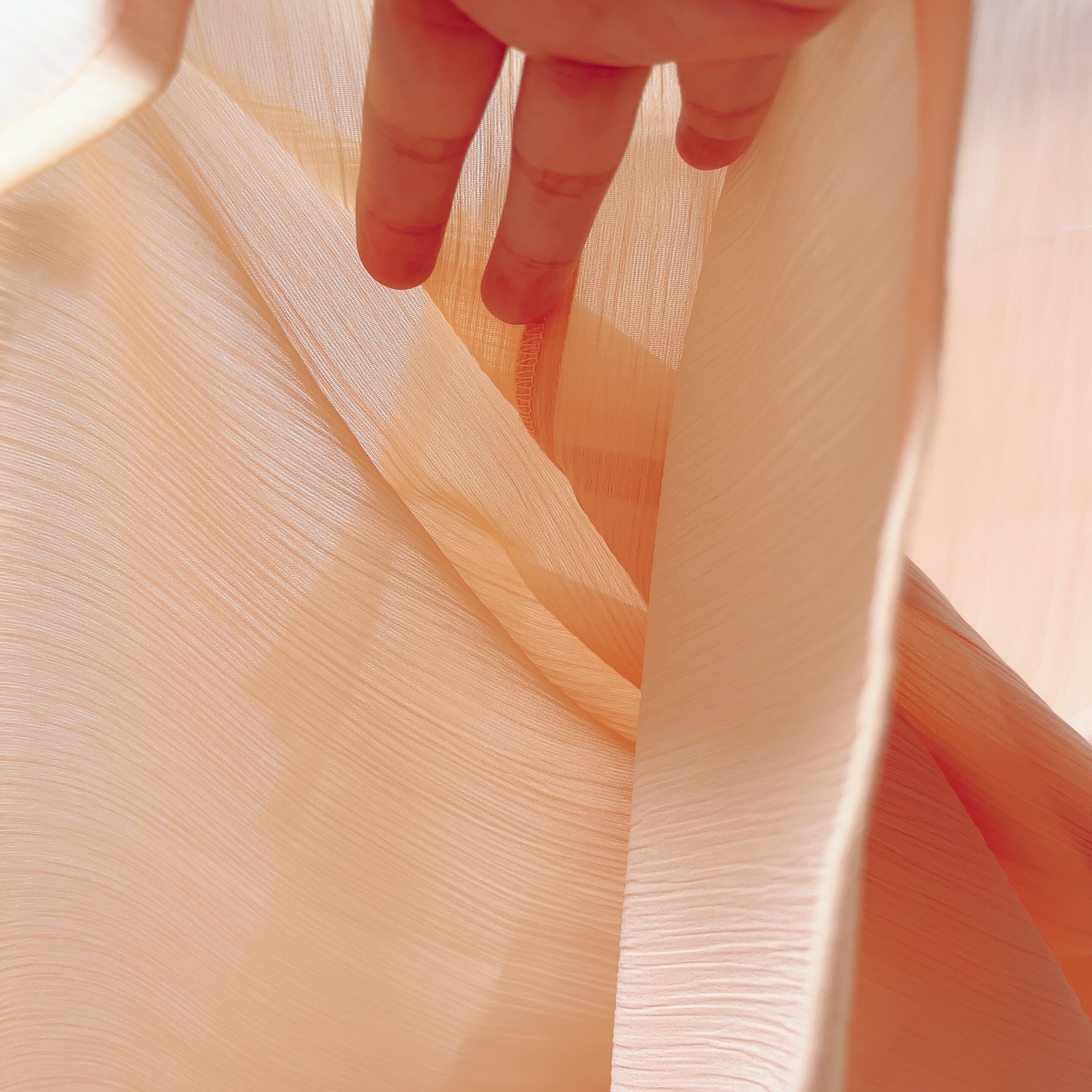 クレープ生地で非常に涼し気。シアーな透け感でインナーとの配色を楽しんで。