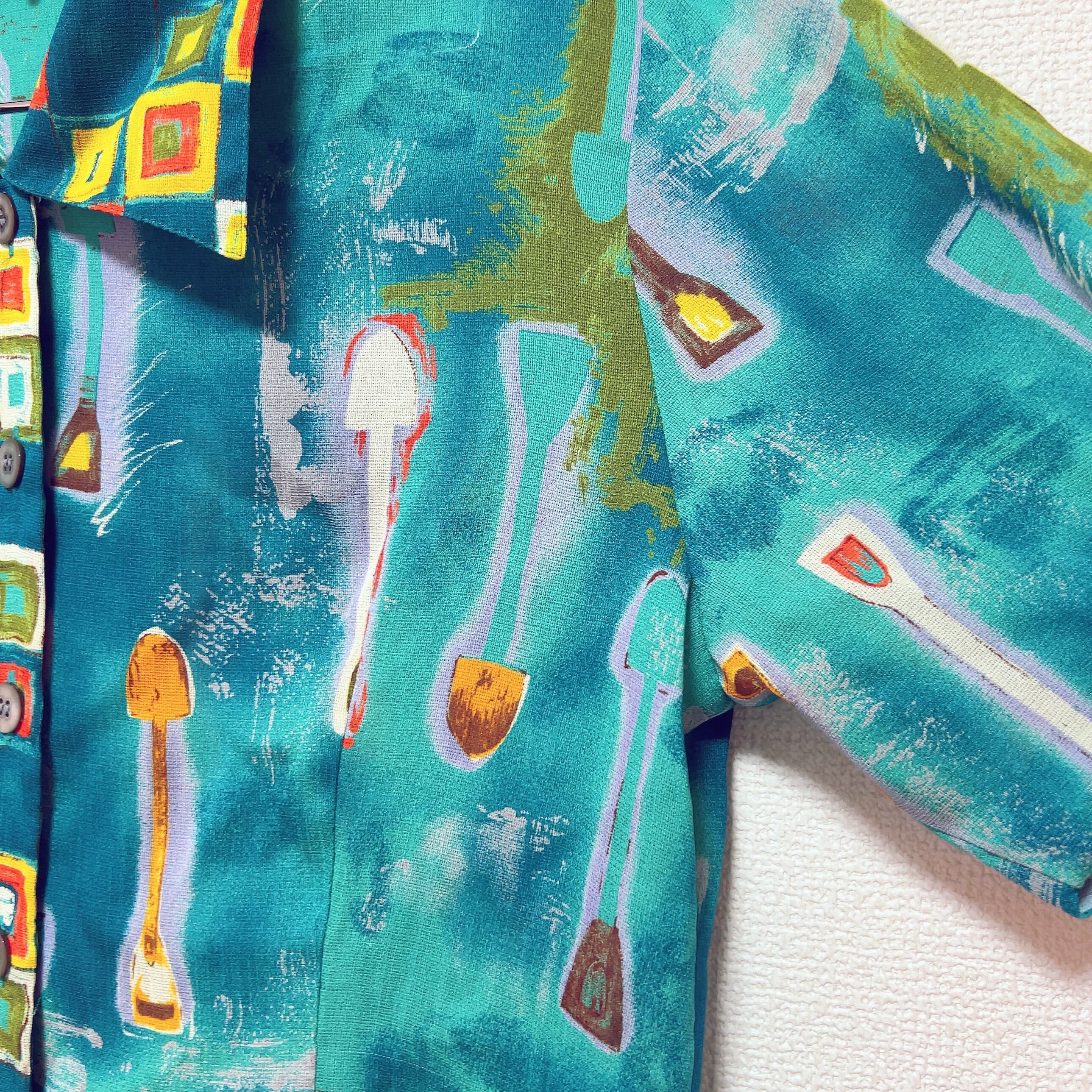 シチリア海のような鮮やかなブルーグリーンに、シャベルが並ぶユニークなデザイン。