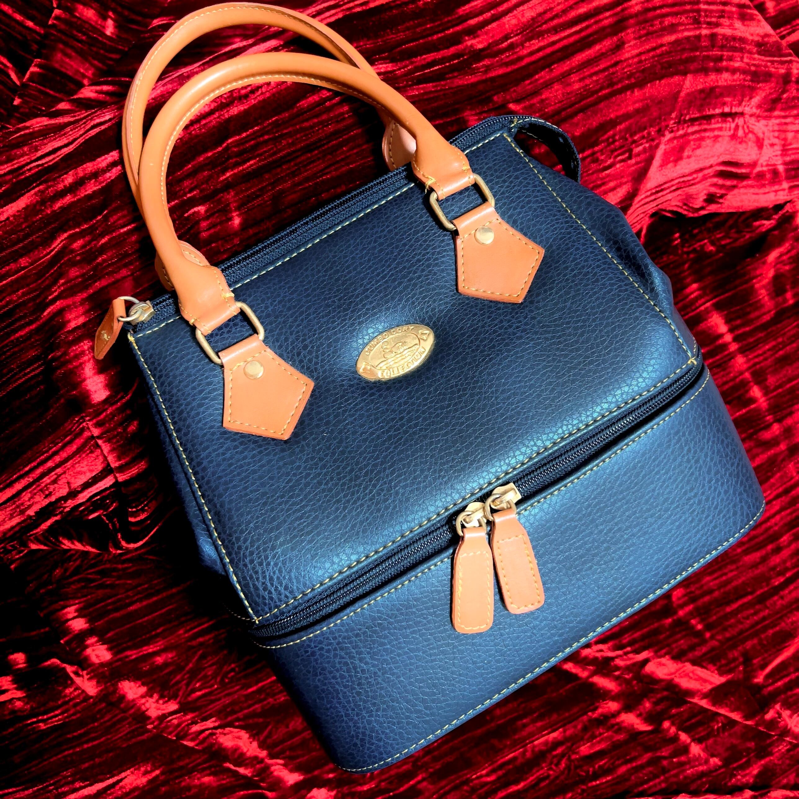 濃紺のボディに明るいキャメルオレンジのアクセントがプレッピー。