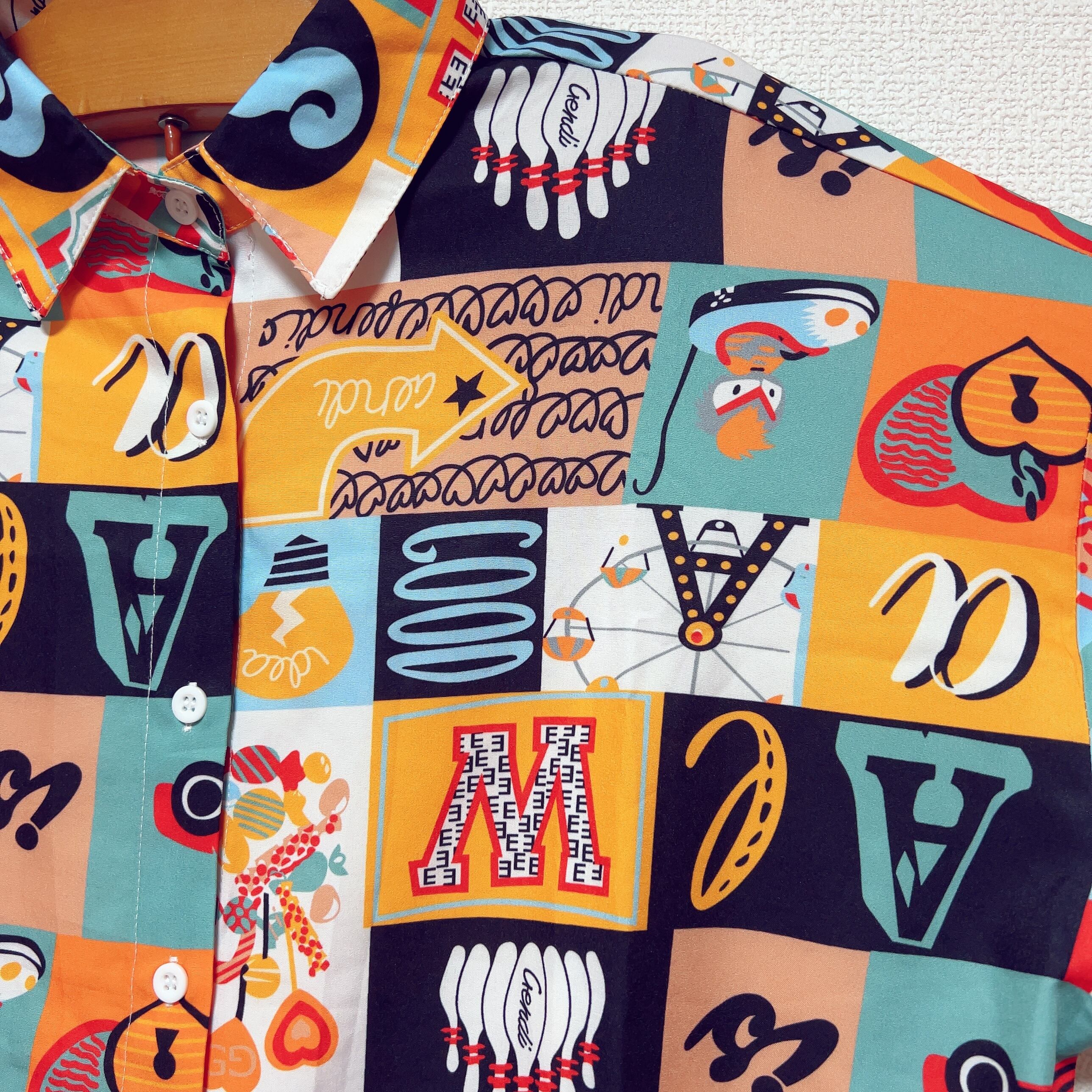 オレンジとレトロブルーがジューシー。よく見ると遊園地の柄が!