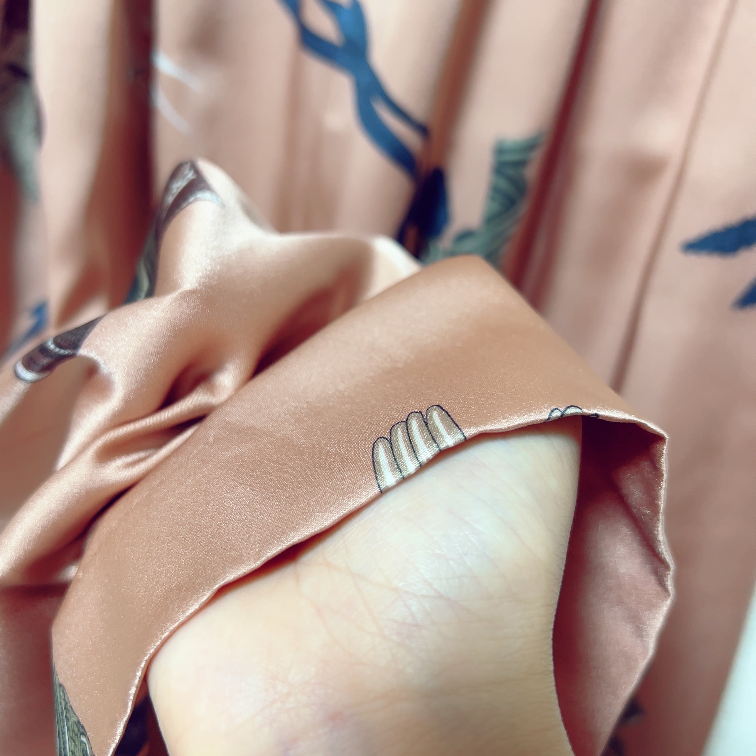 生地のカラーはアプリコットブラウン。あたたかみのある茶系は秋も春も活躍間違いなし。