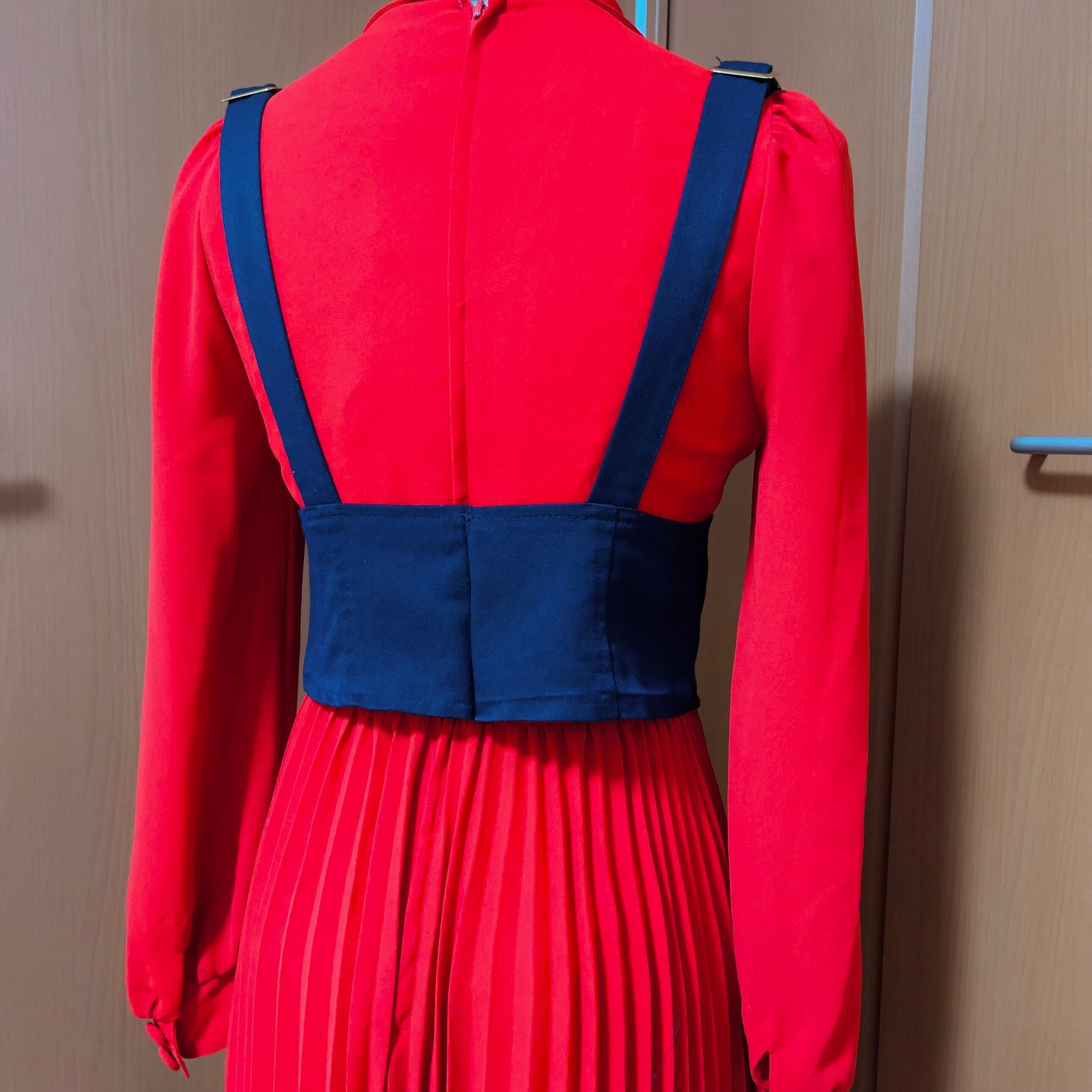 鮮やかな朱赤に、インディゴカラーのビスチェを見繕ってセットにいたしました。
