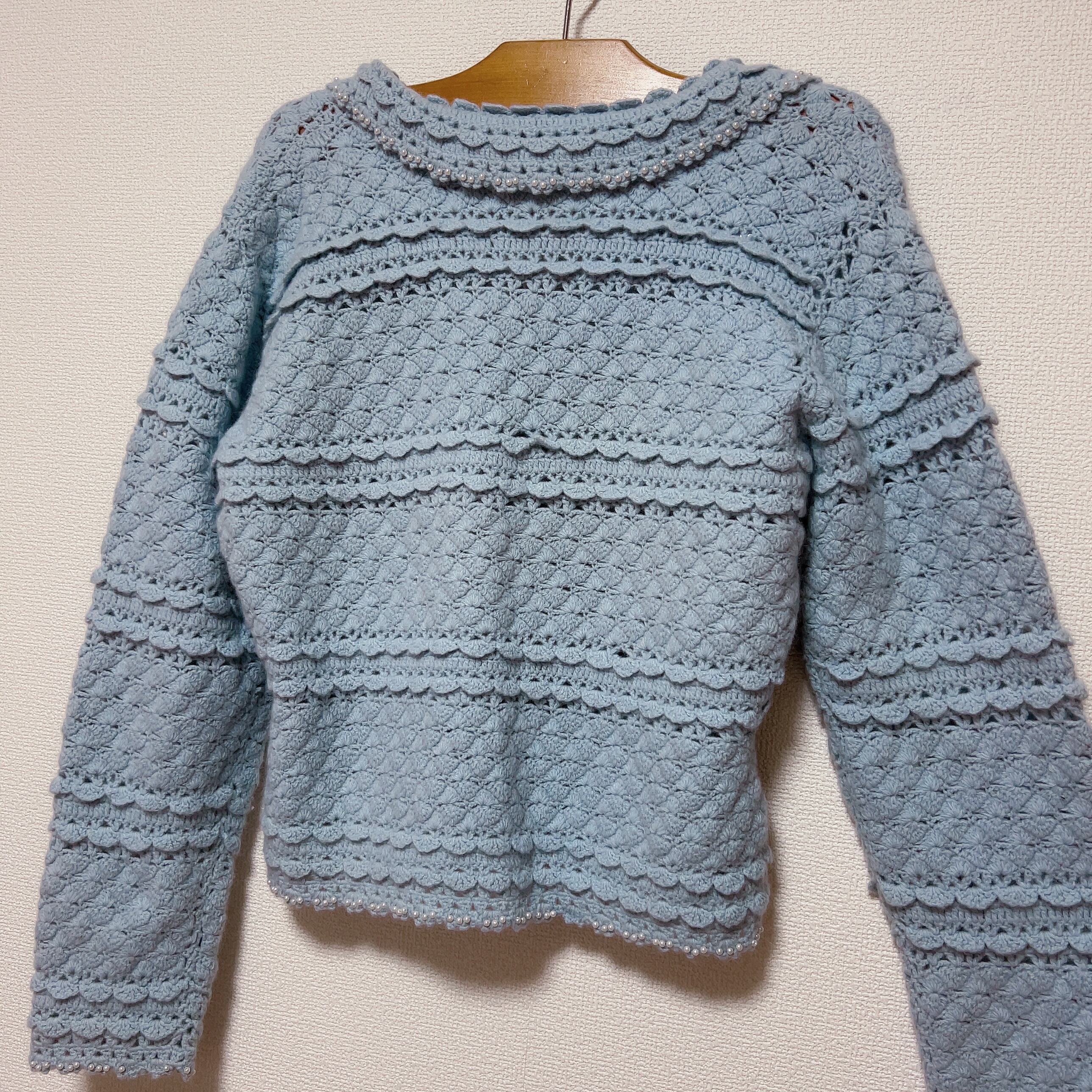 雲から落ちる雪のよう。淡い空色のニットは冬に大活躍です。