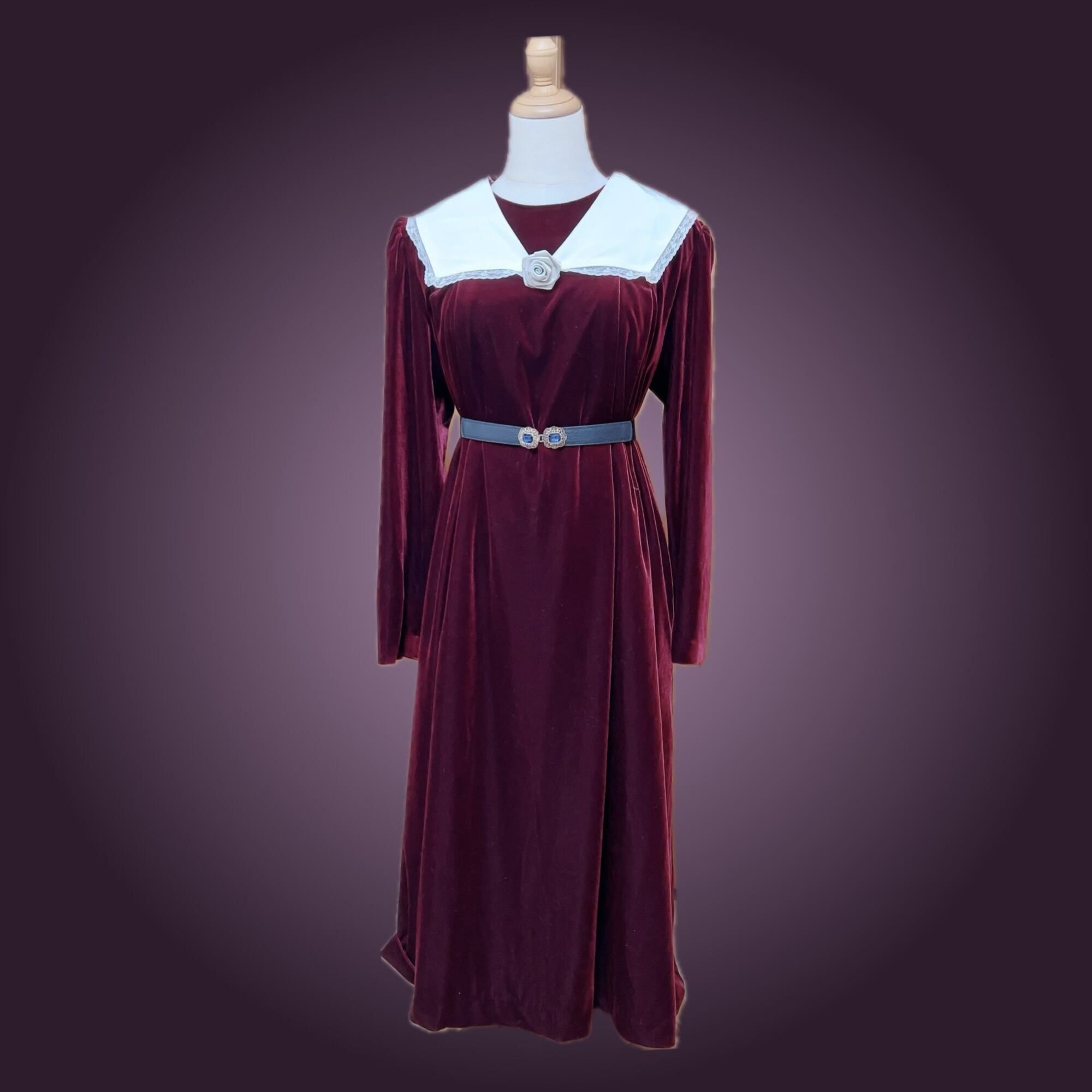深いバーガンディの重厚なベロア生地でできたワンピース。