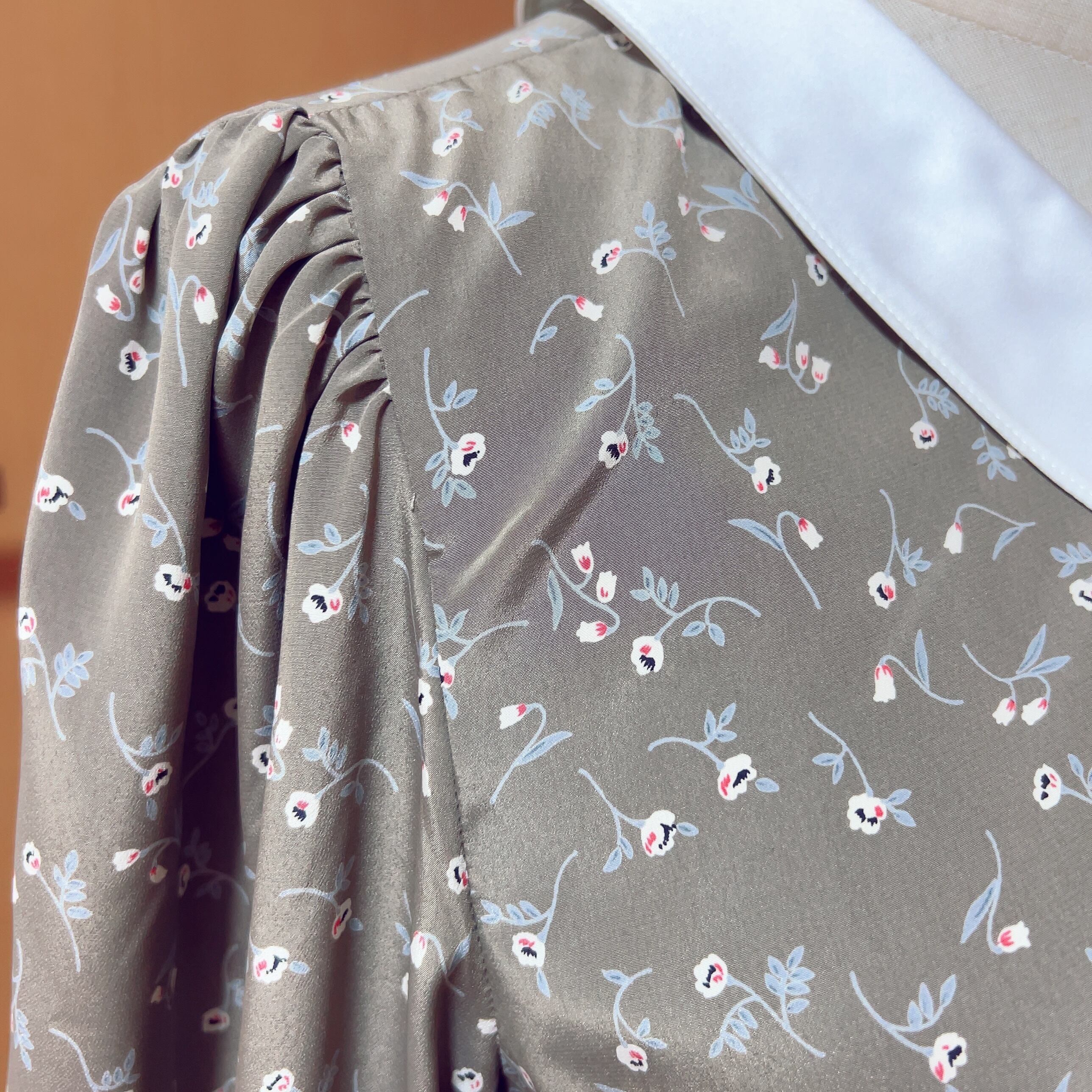 襟がついているので、紐リボンやブローチを合わせるとさらにクラシカルな装いへ。