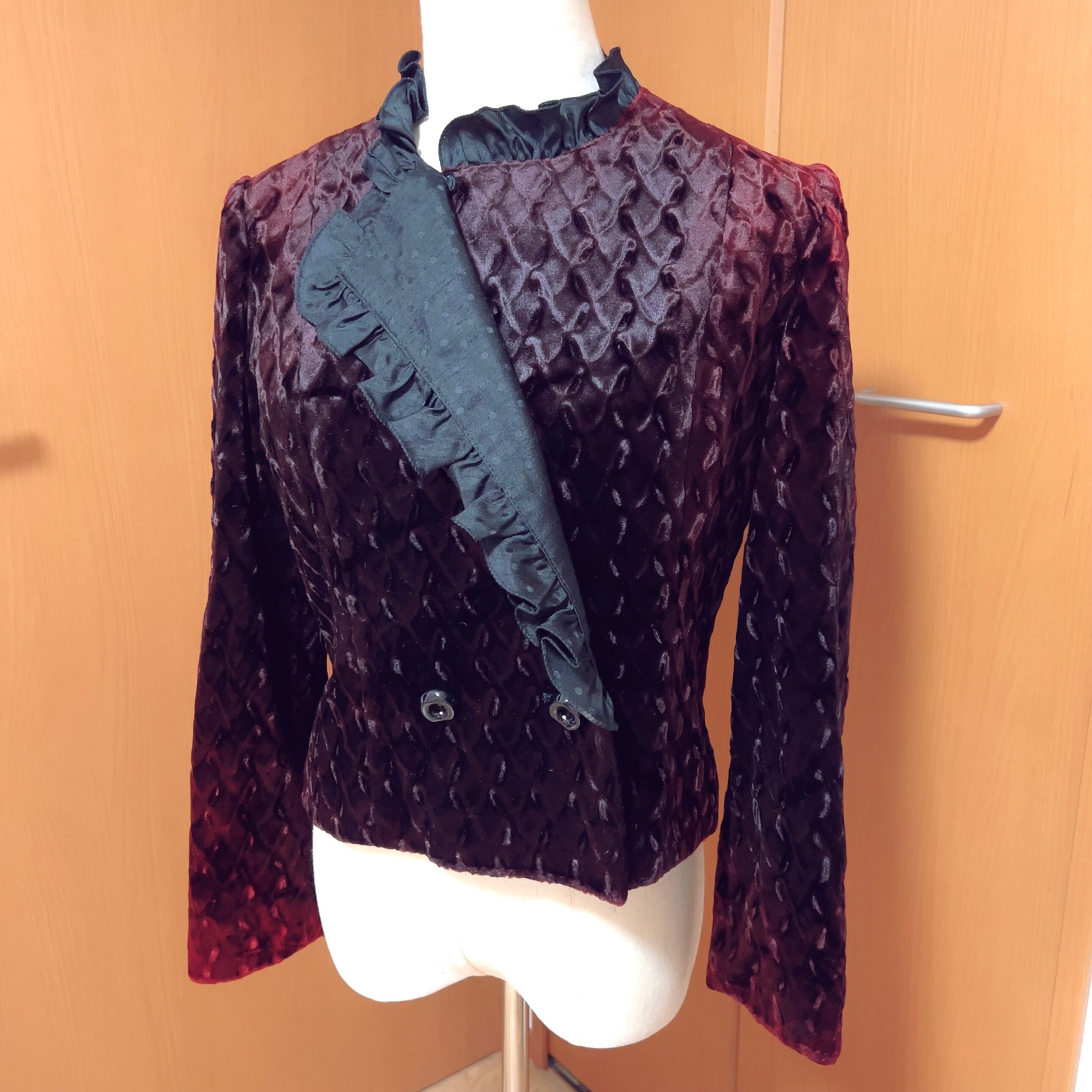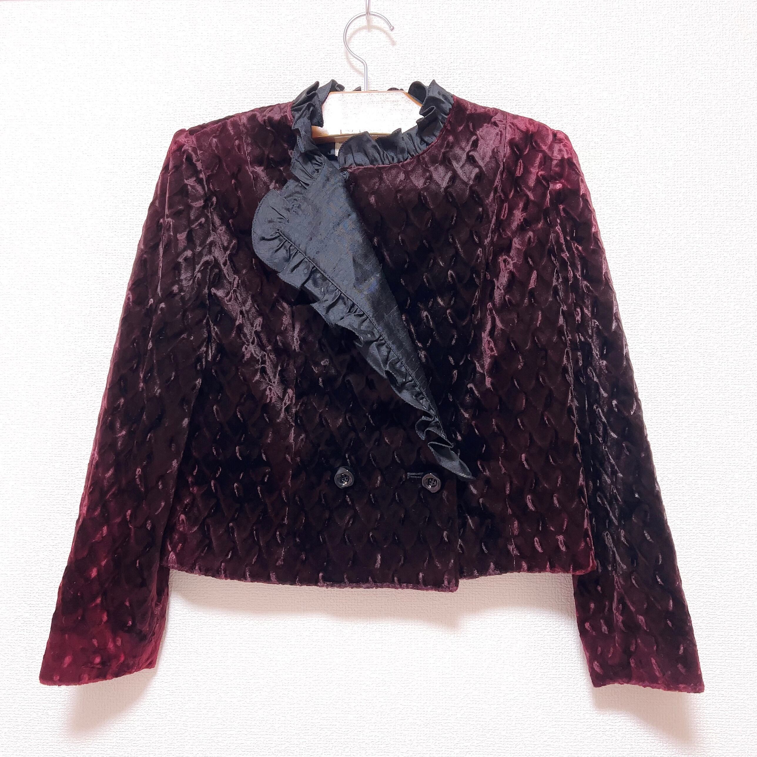 日本製の変わり襟ベロアジャケットで、こっくりと深い葡萄酒のような色にブラウンを混ぜた濃厚なカラーが魅力的。
