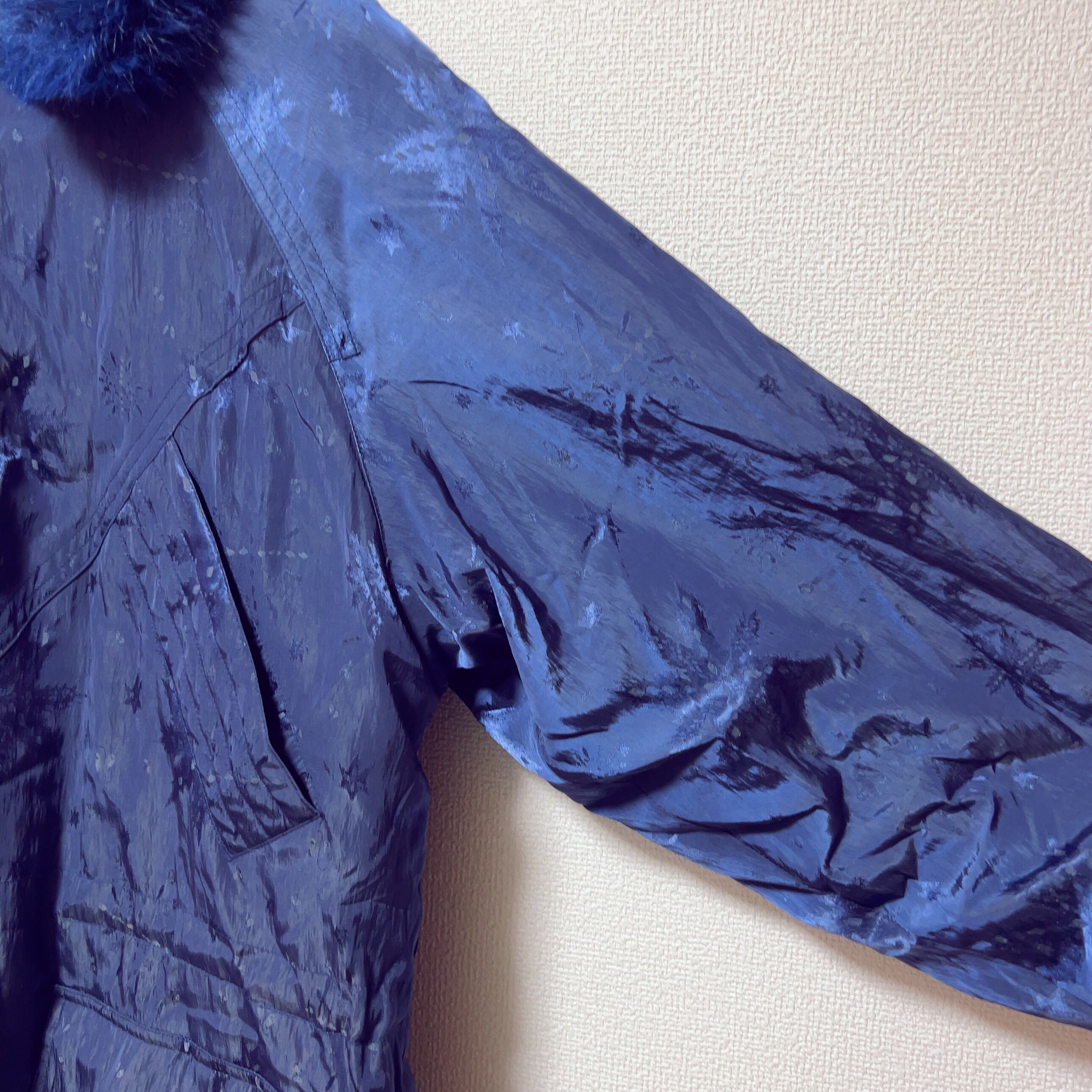濃厚なネイビーに同色のファーフード。同系色なので古臭くなりません。取り外しもOK。
