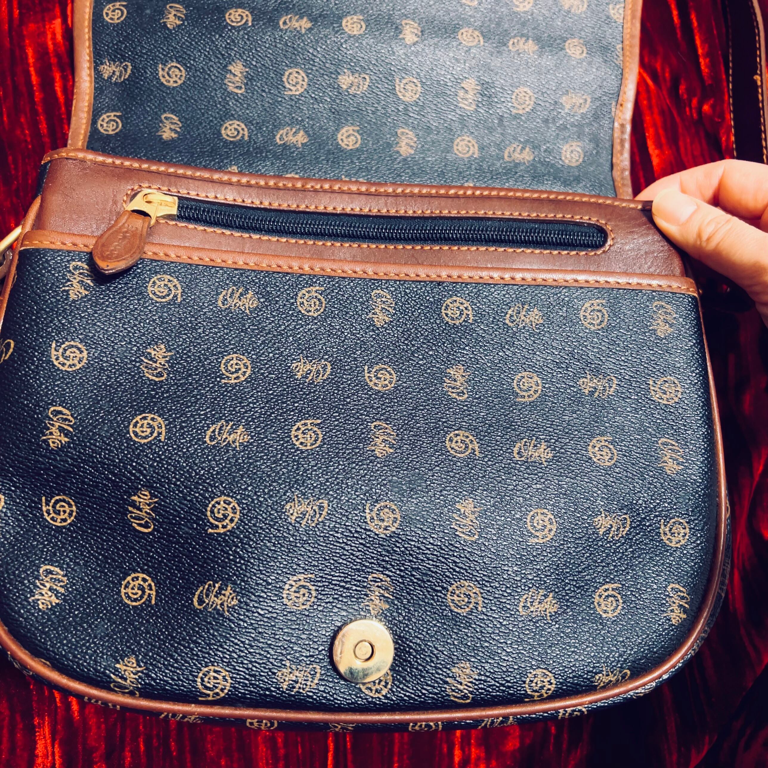 縁やフラップ、ベルト部分はレザーです。しっかりとしたボディ、内外合わせて4つのポケットがついて収納力は抜群です。クラシカルな装いに欠かせないデザイン。