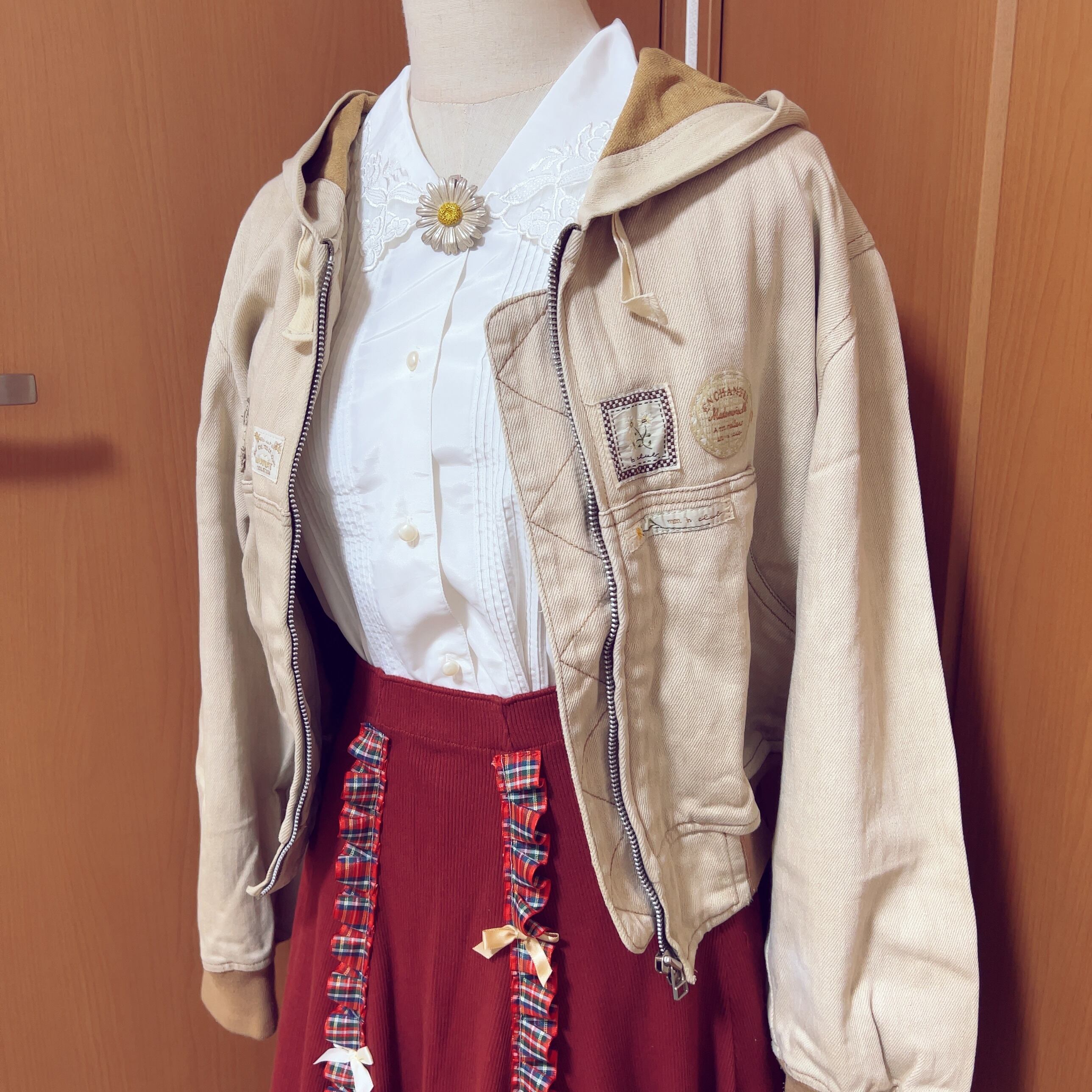 縦ラインが強調されスタイルアップ。アンダースカートを着用するとさらにふわっとAラインになり、レトロガーリーさが上がります!
