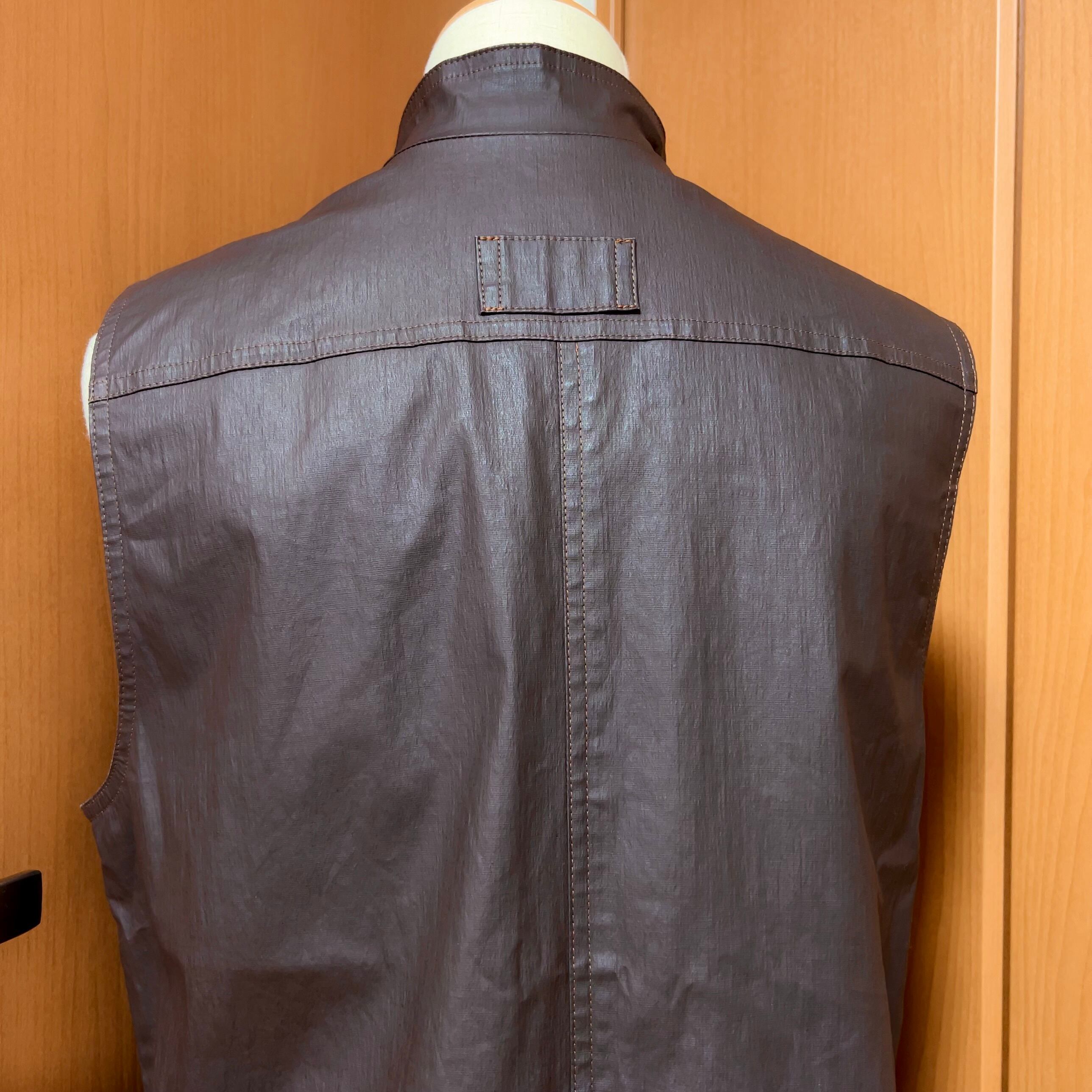 コットンにポリウレタンでレザー風のコーティングがされたノースリーブワンピース。