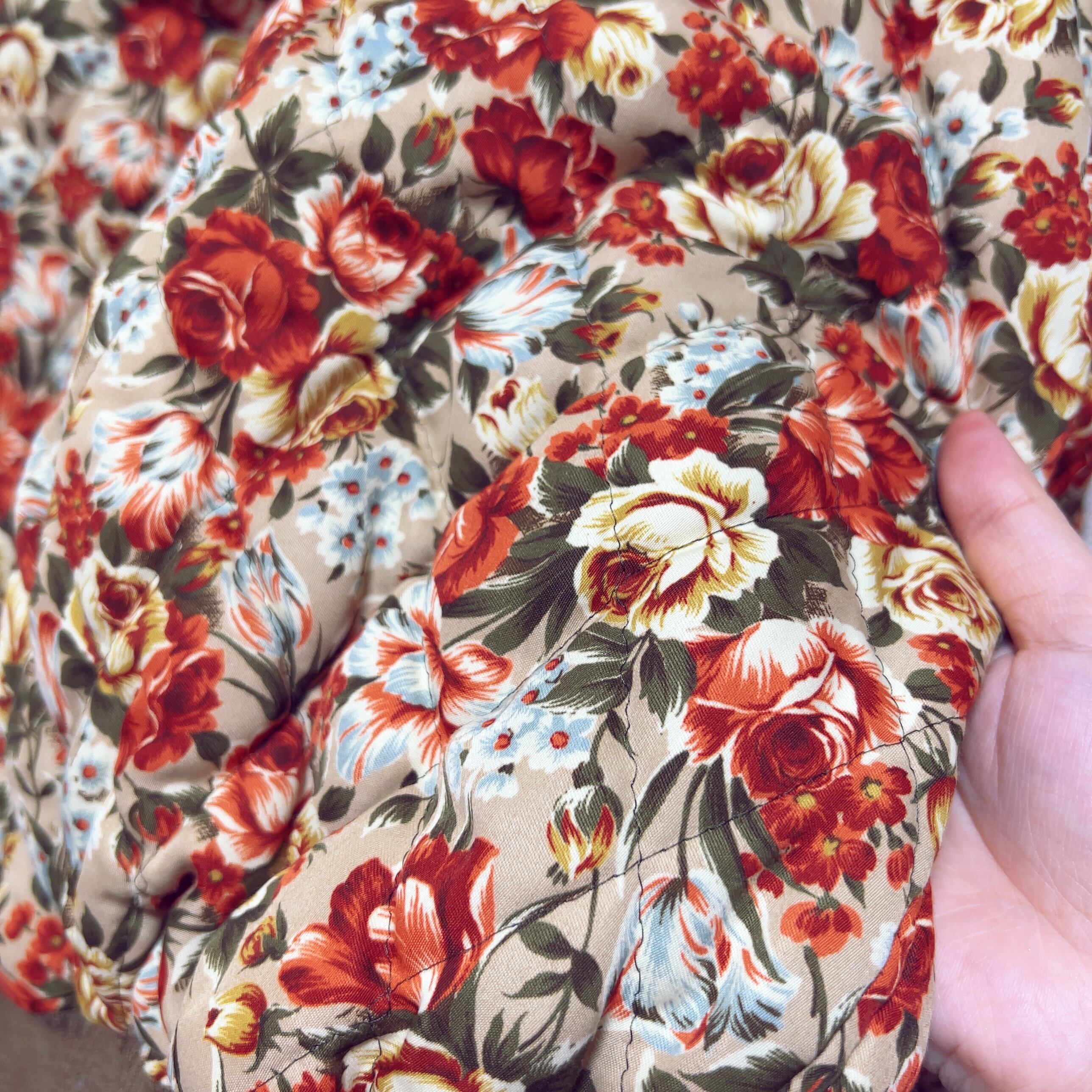 ヴィンテージフローラルな柄がこれからのトレンドにマッチ。ショート丈ジャストなのでハイウエストボトムなどと合わせて。
