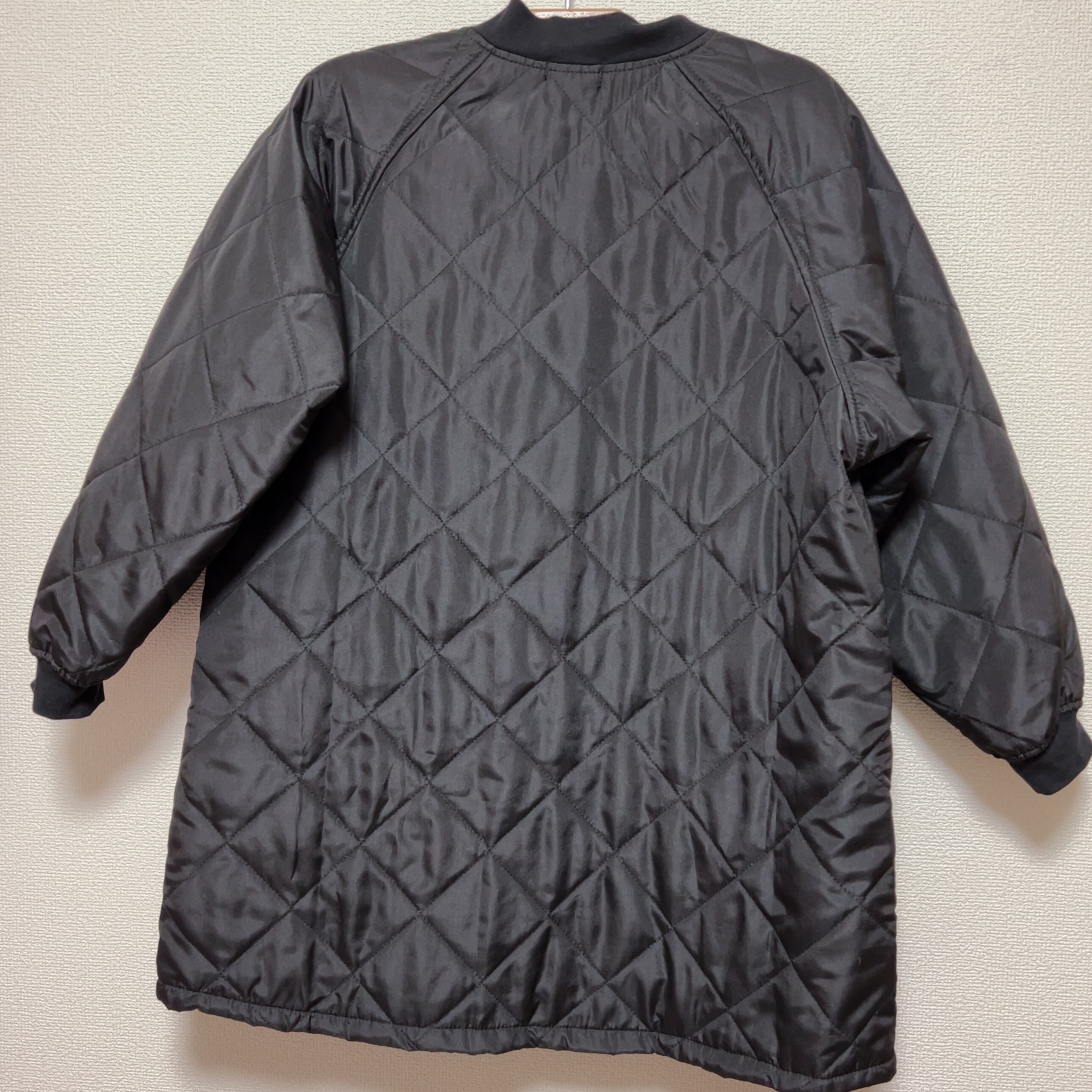 超軽量・薄手のスプリングコート。黒の光沢のあるキルティング生地に立体的な花の飾りが施されたレトロクラシカルなデザイン。